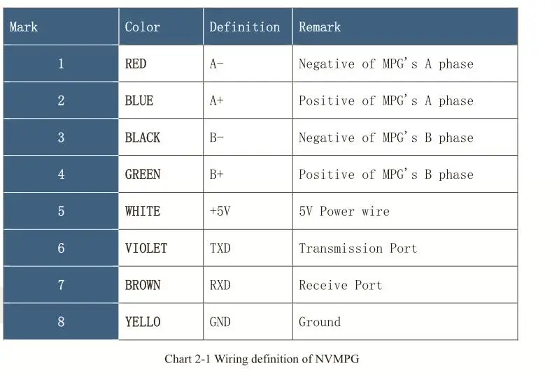 NVMPG-3D has 8 wires connected to CNC system, the definition of NVMPG