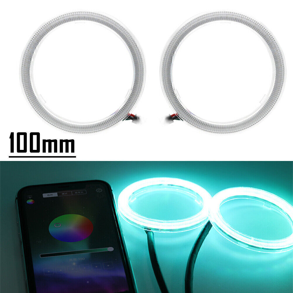 2X RGB Colorful COB Car Headlight Angel Eyes Light LED Halo Rings Lamp Kit 100MM