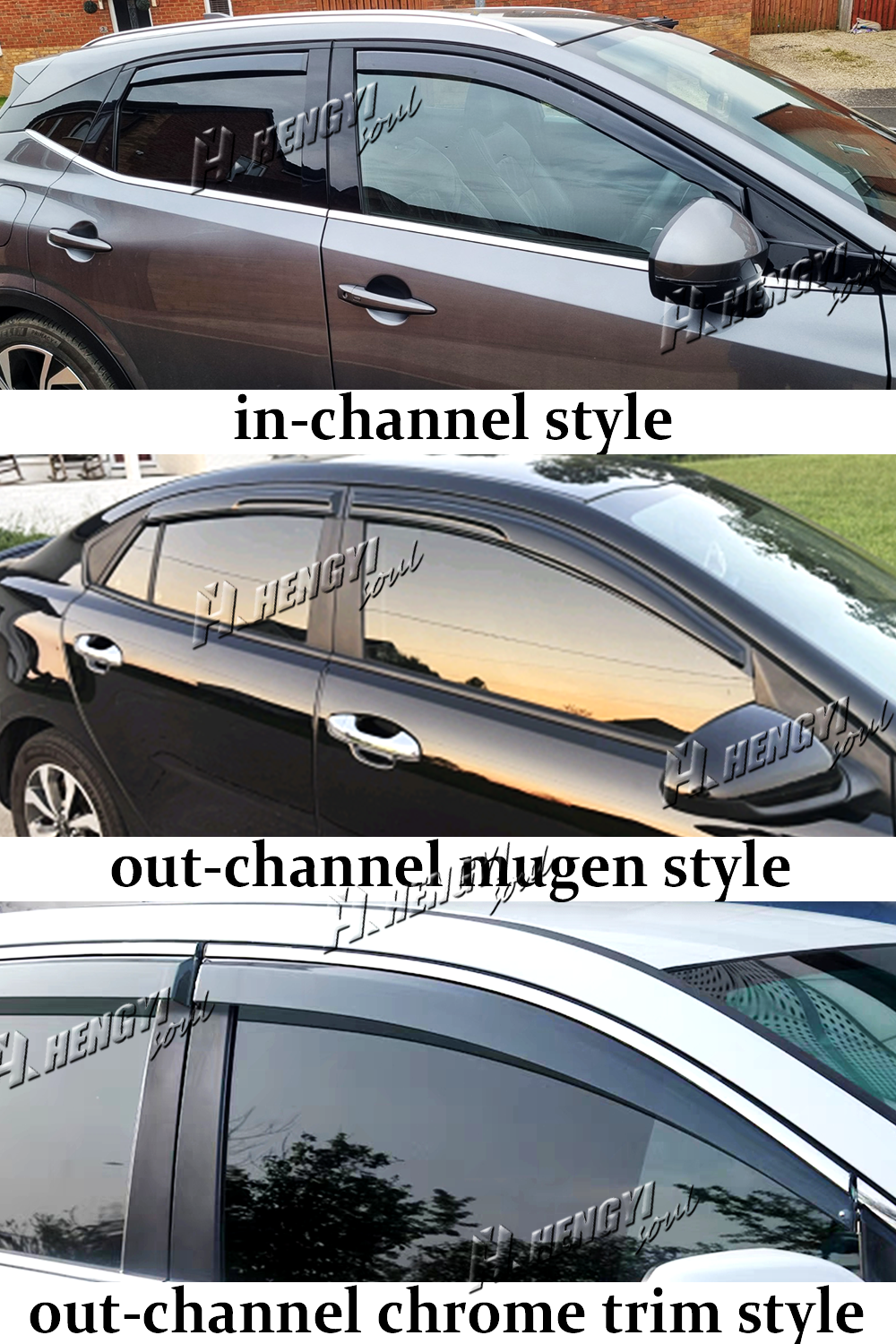 Tape-on Mugen-Style Style Wind Deflector, Rain Guard, Window Visor, Vent Deflector For Honda Pilot 2023-2025 Package Included: 4Pcs / Set Door Window Weather Shield Visors Fitment: For Honda Pilot 2023-2025 Specification: Type: Window Visor Shield Deflector Guard Material: Acrylic Color: All Black (100% Opaque, nontransparent) Product Type: Stick-On Type, Adhesive Double-Sided Tape Features: Rain Deflection: Keep your windows partially open during rain without getting soaked. Wind Blockage: Reduce wind noise and turbulence inside the vehicle. Sun Protection: Shield your eyes from the sun's glare, especially when driving low-angled sunlight. Dust and Debris Prevention: Keep dust, dirt, and other debris from entering the vehicle. Fresh Air Flow: Allow fresh air to circulate inside the vehicle without fully opening the windows. Reduced Heat: Help to cool down the interior of your car by allowing fresh air to enter. Fog Reduction: Prevent fogging on the windows by allowing air to circulate. Installation Instruction: Materials Needed: Window deflector set Cleaning cloth Isopropyl alcohol (we don’t provide) Adhesive tape (provided with the window deflectors) Installation Steps: Clean the Window Surface: Using a cleaning cloth, thoroughly clean the surface of the window where the deflector will be applied. Ensure the window is free of dirt, dust, and any residues. Prepare the Surface with Isopropyl Alcohol: Dampen a clean cloth with isopropyl alcohol. Wipe the window surface with the alcohol-soaked cloth to remove any remaining contaminants and ensure proper adhesion. Position the Window Deflector: Identify the correct deflector for the specific window. Position the deflector on the exterior of the window to ensure proper alignment. Attach the Adhesive Tape: Peel off the protective backing from the adhesive tape on the deflector. Carefully align the deflector with the window frame, ensuring it fits securely. Press Firmly for Adhesion: Once the deflector is properly positioned, press firmly along the entire length to secure the adhesive tape to the window frame. Repeat for Other Windows: Repeat the process for each window where deflectors are to be installed. Allow for Adhesive Cure Time: It is recommended to allow the adhesive to cure for at least 24 hours before driving or rolling down windows. Note: Ensure ambient temperature is above 50°F (10°C) for optimal adhesion. Do not wash the vehicle or roll down windows during the curing period. Maintenance: Clean the deflectors with mild soapy water and a soft cloth.