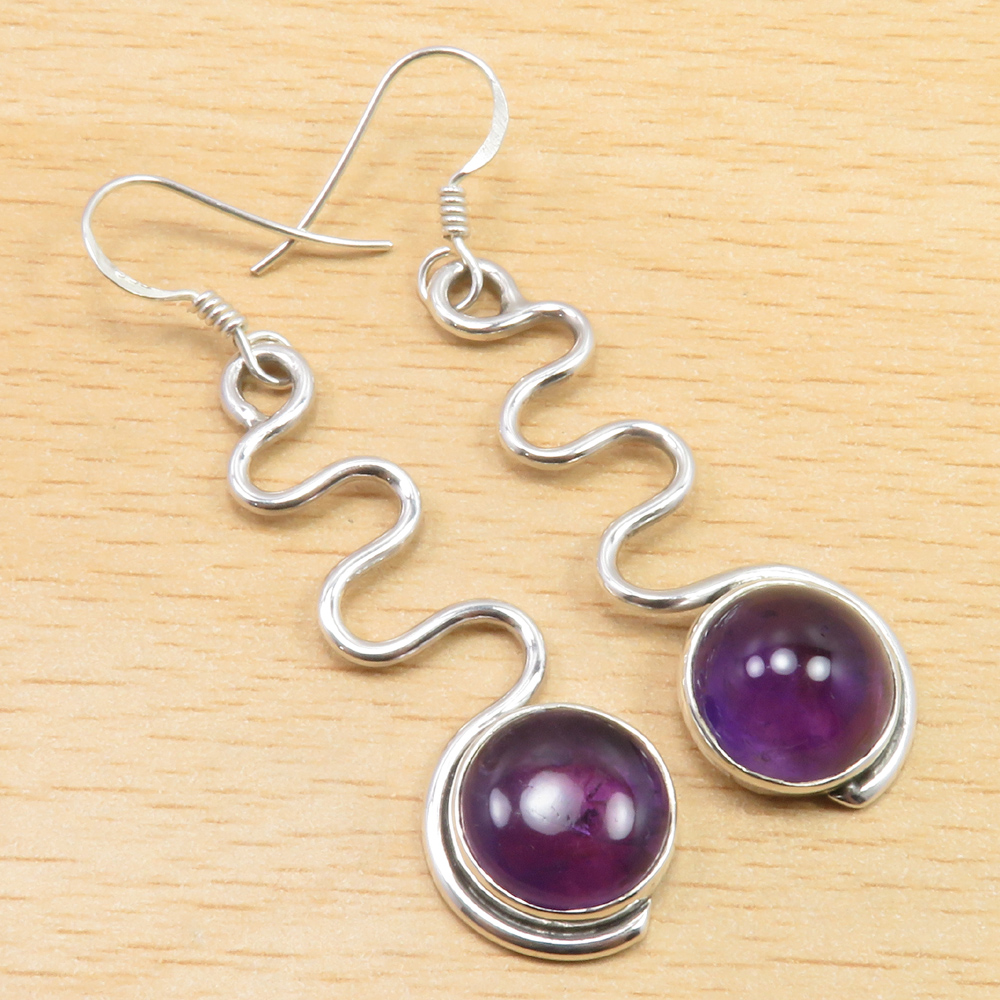 AMETHYST Earrings 2.2" 925 Solid Stamp Sterling Silver High End Jewelry Resale