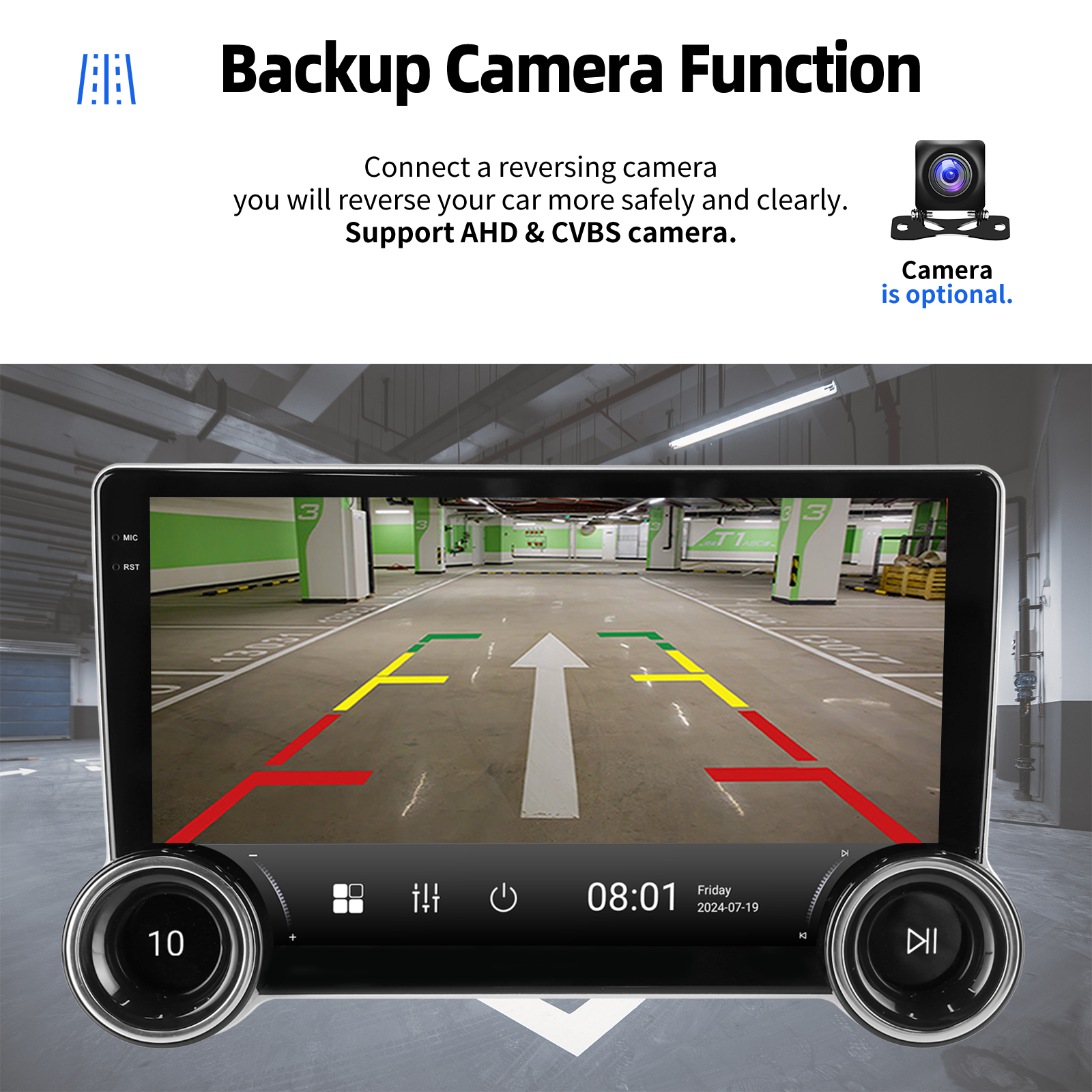 AHD Rear View Camera Input & Steering Wheel Control: After connecting to the rear view camera. The radio automatically displays the reversing image as soon as you engage reverse gear. Make your daily reversing safer. Support AHD camera. Support original car steering wheel control to make driving more convenient and safer