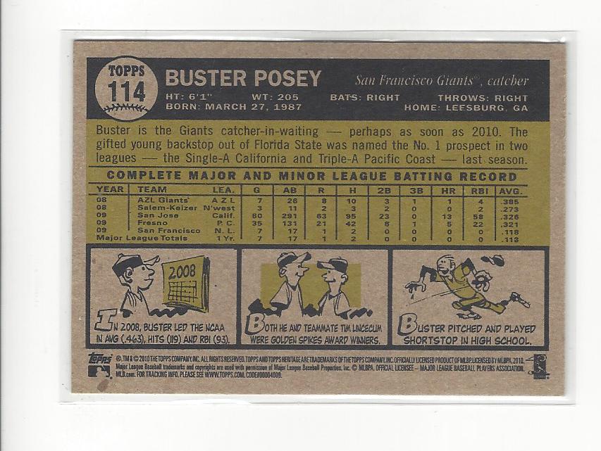 2010 Topps Heritage #114 Buster Posey RC Rookie Giants