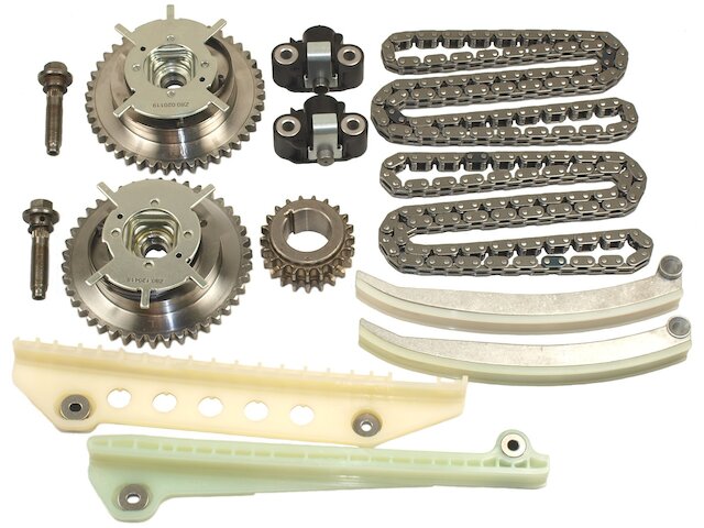 - Kit Contains: Timing Chain (2), Timing Chain Tensioner (2), Timing Chain Guide (2), Timing Chain Tensioner Guide (2), Timing Crankshaft Sprocket, Variable Valve Timing (VVT) Sprocket (2)