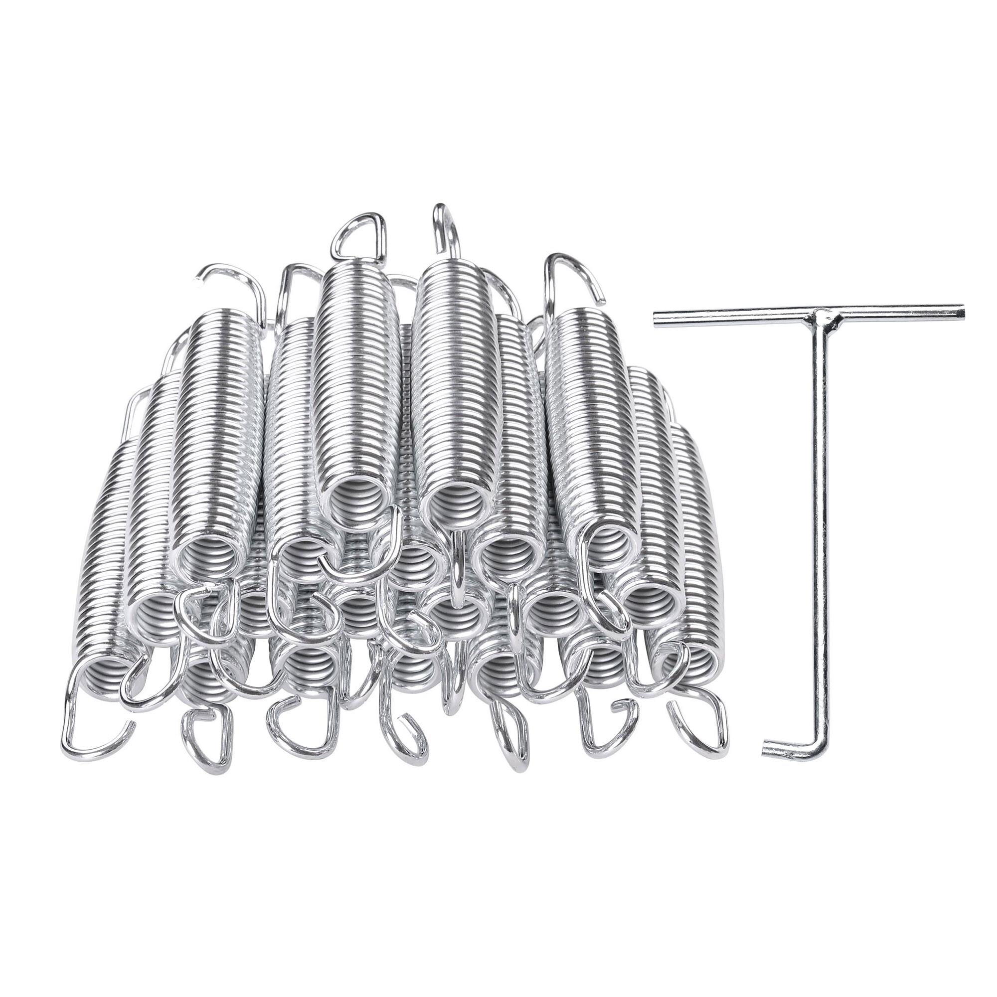 - Set of 20 Pieces - This Set of 20pcs 5 1/2" Heavy-Duty Trampoline Springs are ideal for replacing the rusted, worn out or dangerously damaged springs of your trampoline, extending its lifespan and allowing more years of safe usage without the need to replace the whole trampoline.Comes with a T-hook enabling you to easily install the springs to trampoline frame, no need to worry about injury.