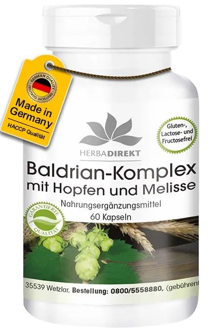 - Inhalt: 60 Kapseln Baldrian-Komplex mit Hopfen und Melisse. Ergiebige Packung ohne Magnesiumstearat! Hochdosiert