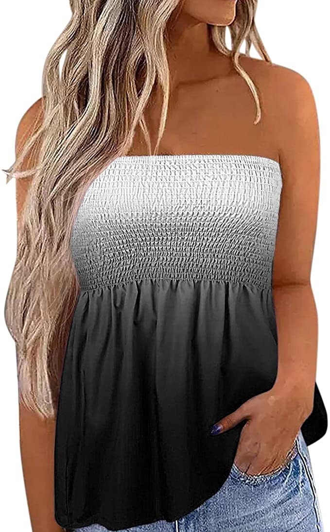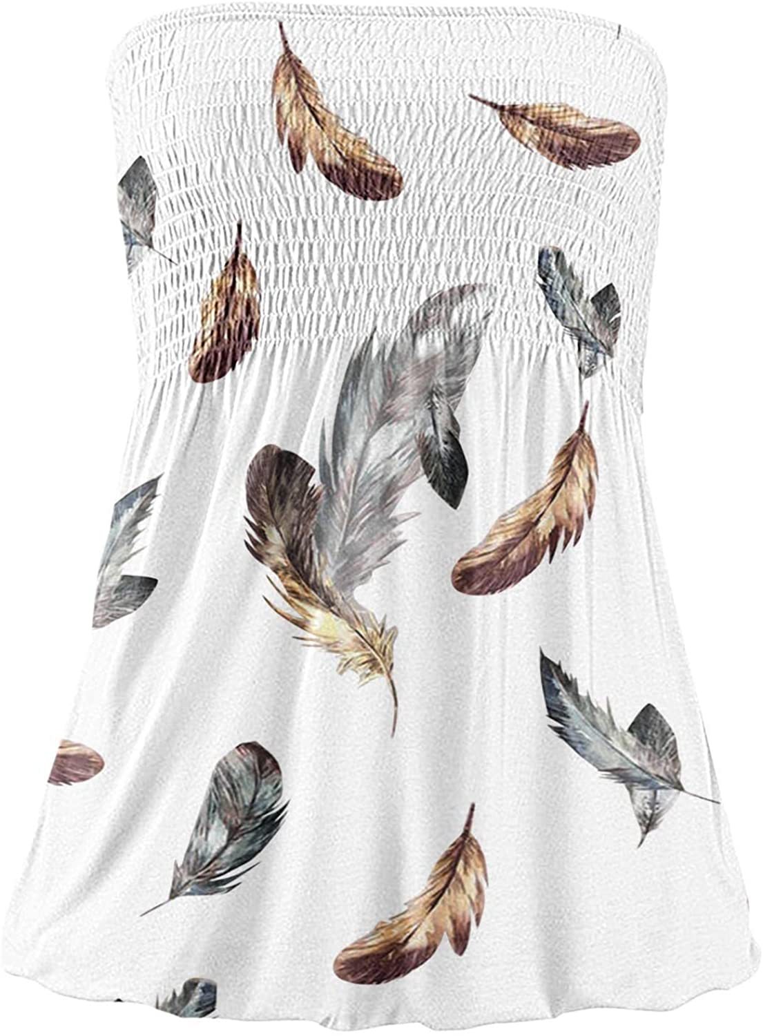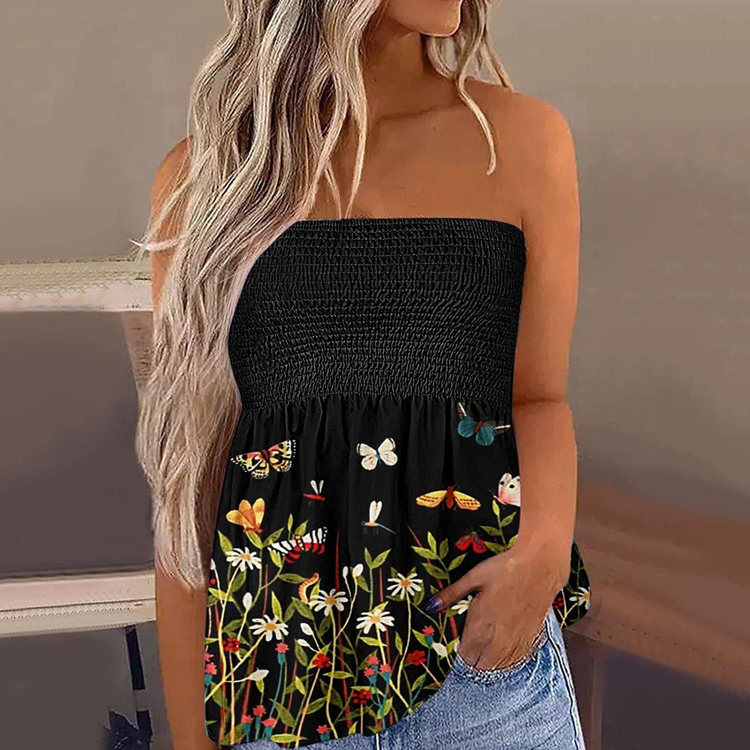 Womens Tube Top Summer T Shirts Floral Sleeveless Casual Loose Tunic Blouses
