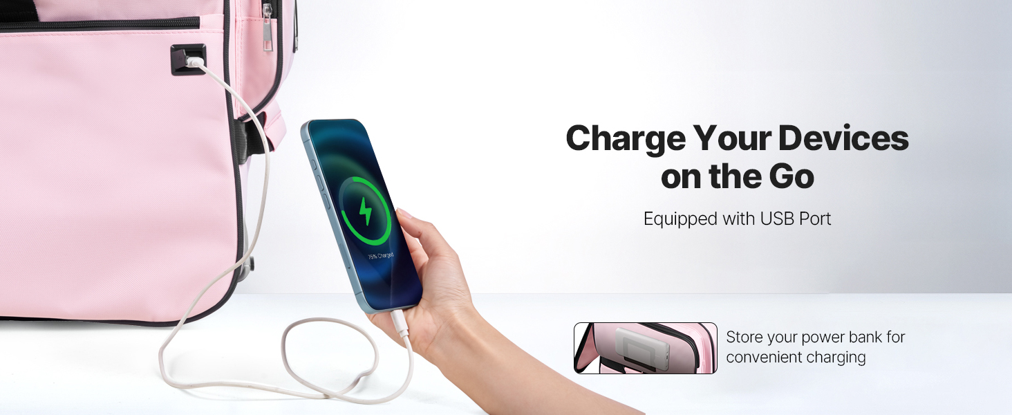 - Your Private Space Backstage: This dance bag comes with a privacy curtain, creating a personal space for quick outfit changes and rest backstage. It also features a USB port, allowing you to store your power bank inside the bag and charge on the go, anytime and anywhere