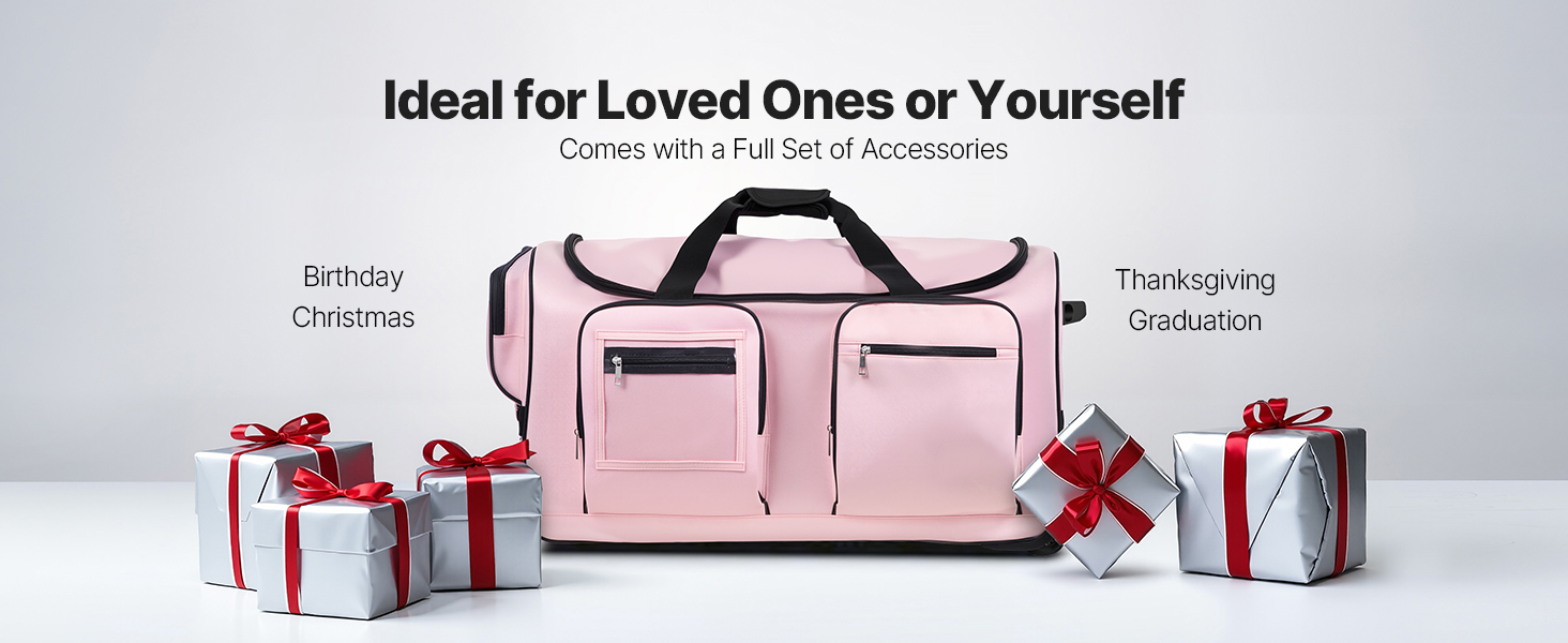 Our anti-tilt garment bag transforms into a portable mini wardrobe with a retractable stand and 10+ pockets. The curtain offers privacy for quick outfit changes. With a USB port and premium wheels, it facilitates movement and charging. The PU100 waterproof coating provides long-lasting reliability.
