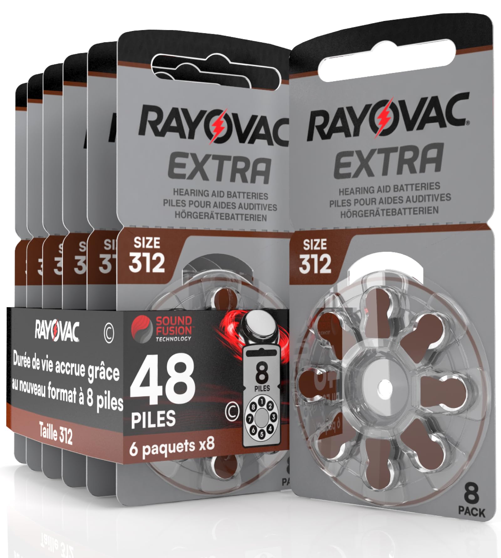 48 Piles Auditives Rayovac Extra 312. 6x8 Piles pour Appareil Auditif