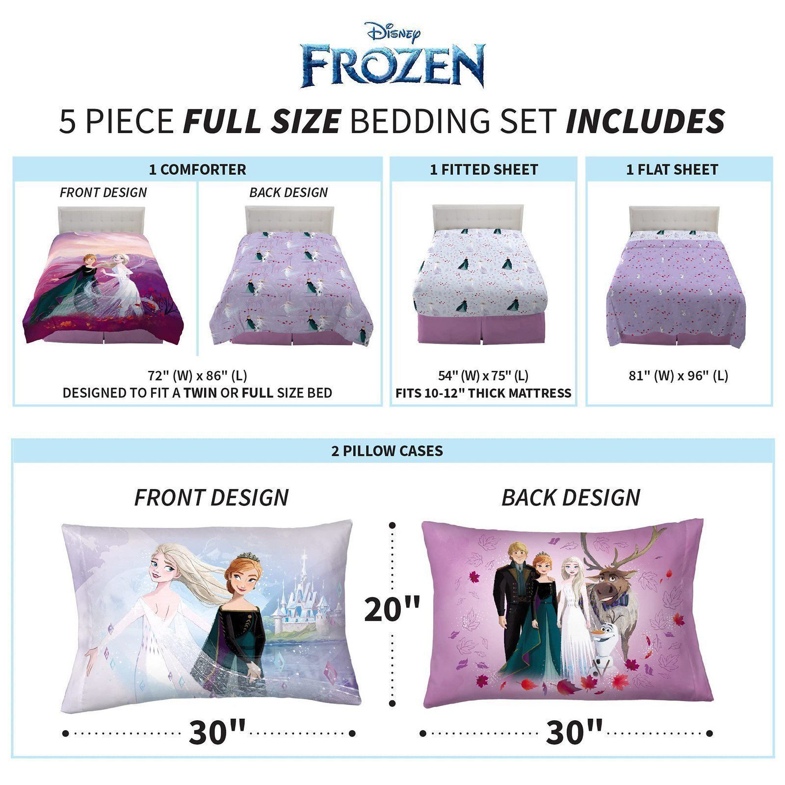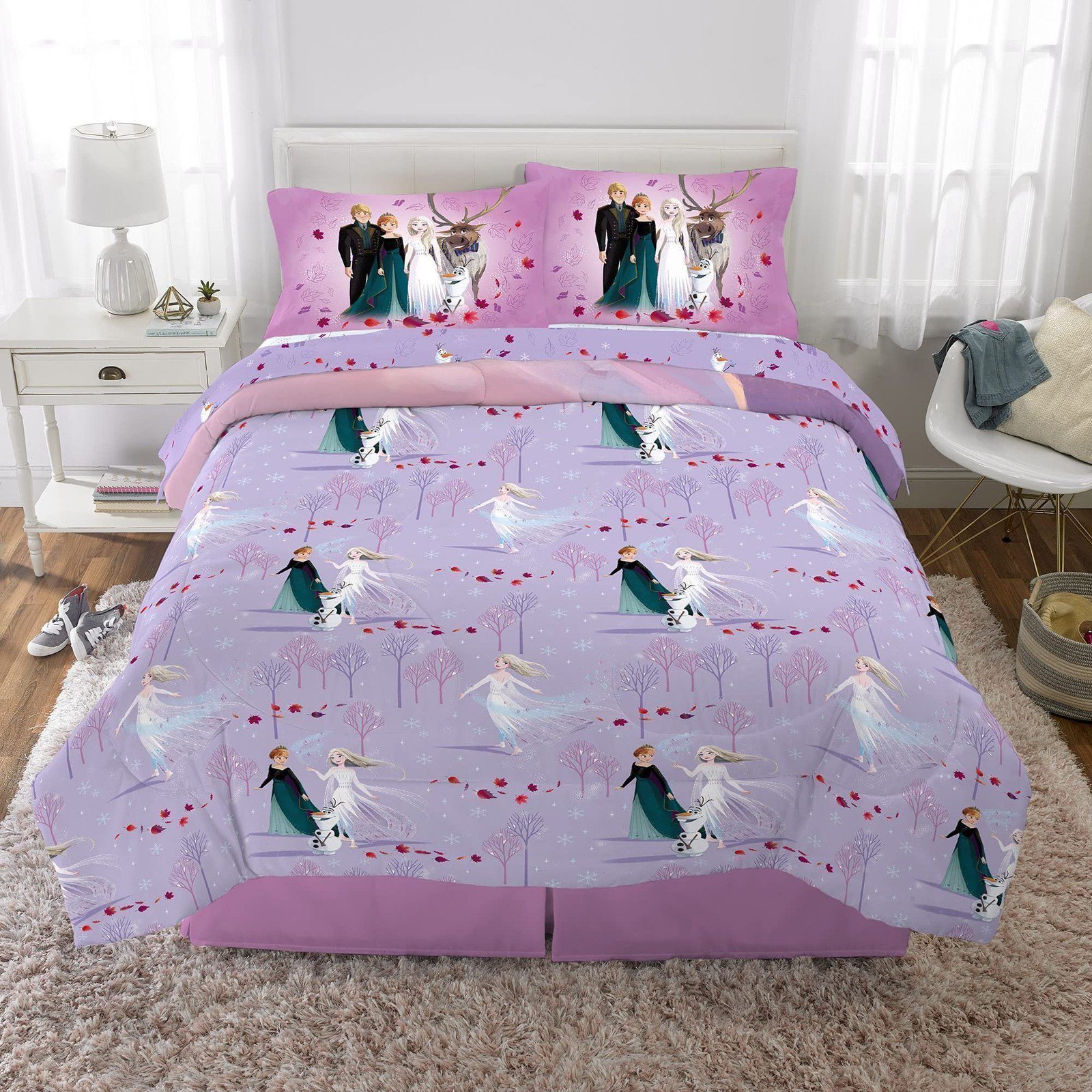 - DISNEY FROZEN 2 DESIGN: Bring the magic of Disney to your child's bedroom with adorable Frozen 2 bedding set. This versatile bedding features Anna, Elsa, Kristoff, Sven and Olaf from the popular animated feature. Eye-catching pastel colors are complemented with animated character imagery in a "Dance and Live Free" theme.
