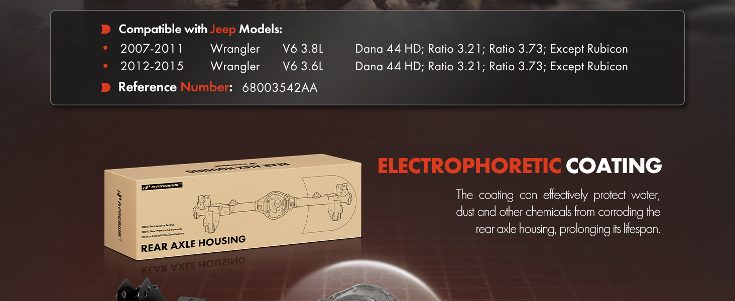 A-Premium Rear Axle Housing for Jeep Wrangler JK Ratio 3.21 / 3.73 Dana 44 HD