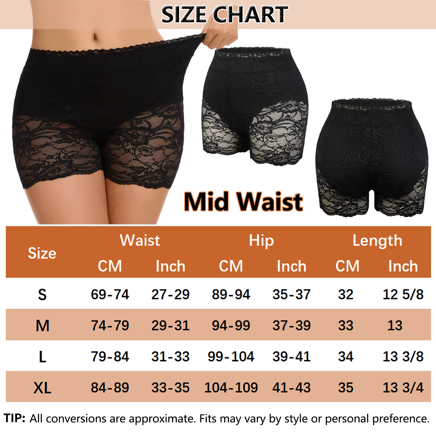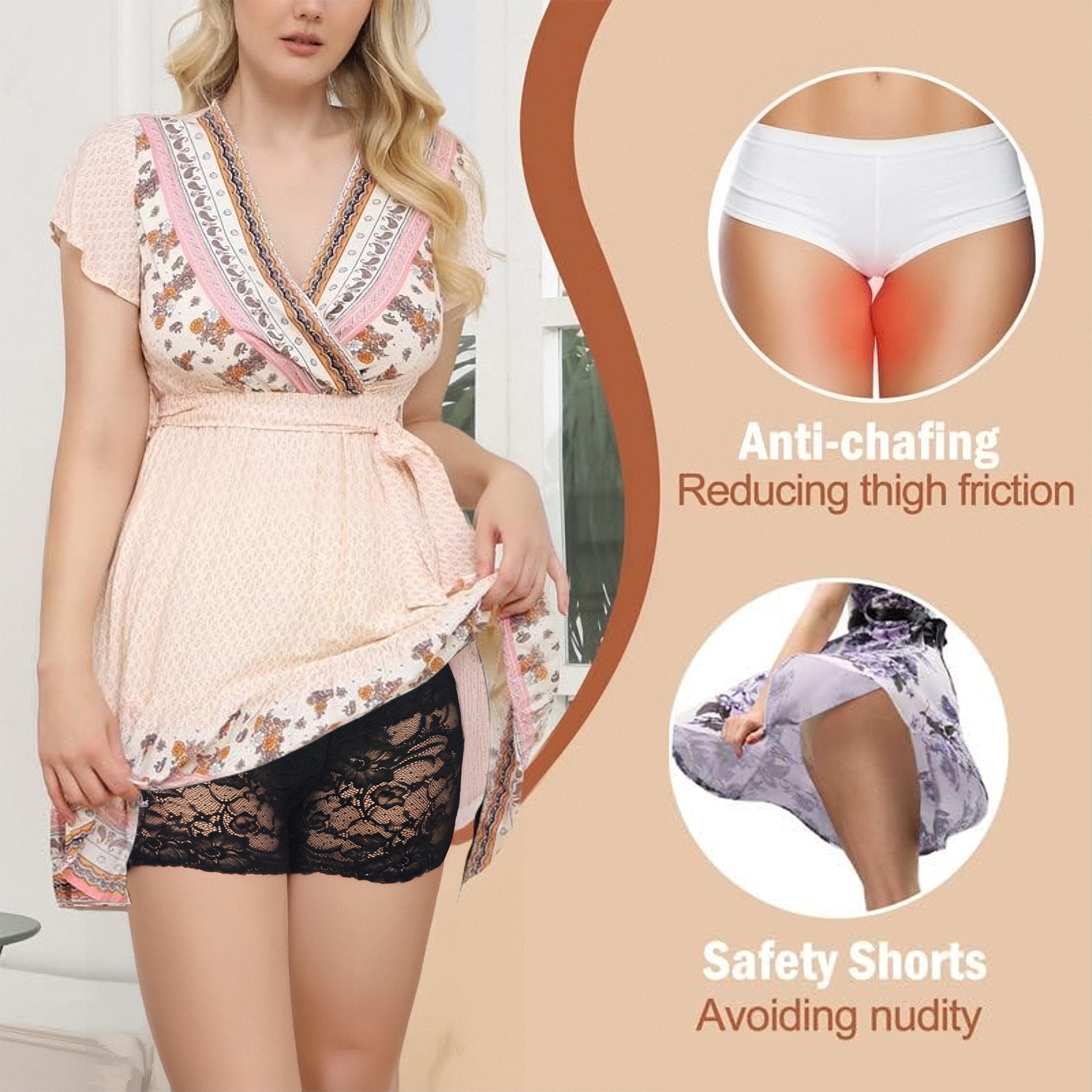 【Smooth Safety Shorts】Our thigh Chafing shorts with nice lace trim is combine fashion, functions and cute. Doesn't embarrass even if peek out from under dress or skirts. And the lace quality of under skirt shorts for women is great enough to let you comfortable, durable to use, also make sure your skin could breath.