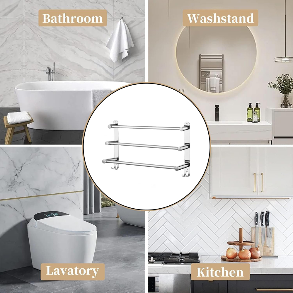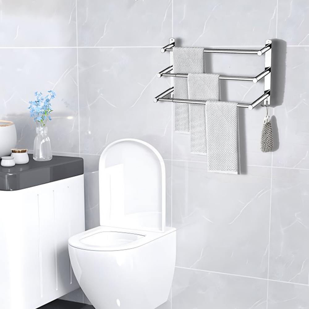 The bathroom towel holder adopts high-quality stainless steel material, which is durable and can be used for a long time.