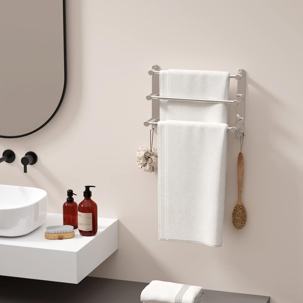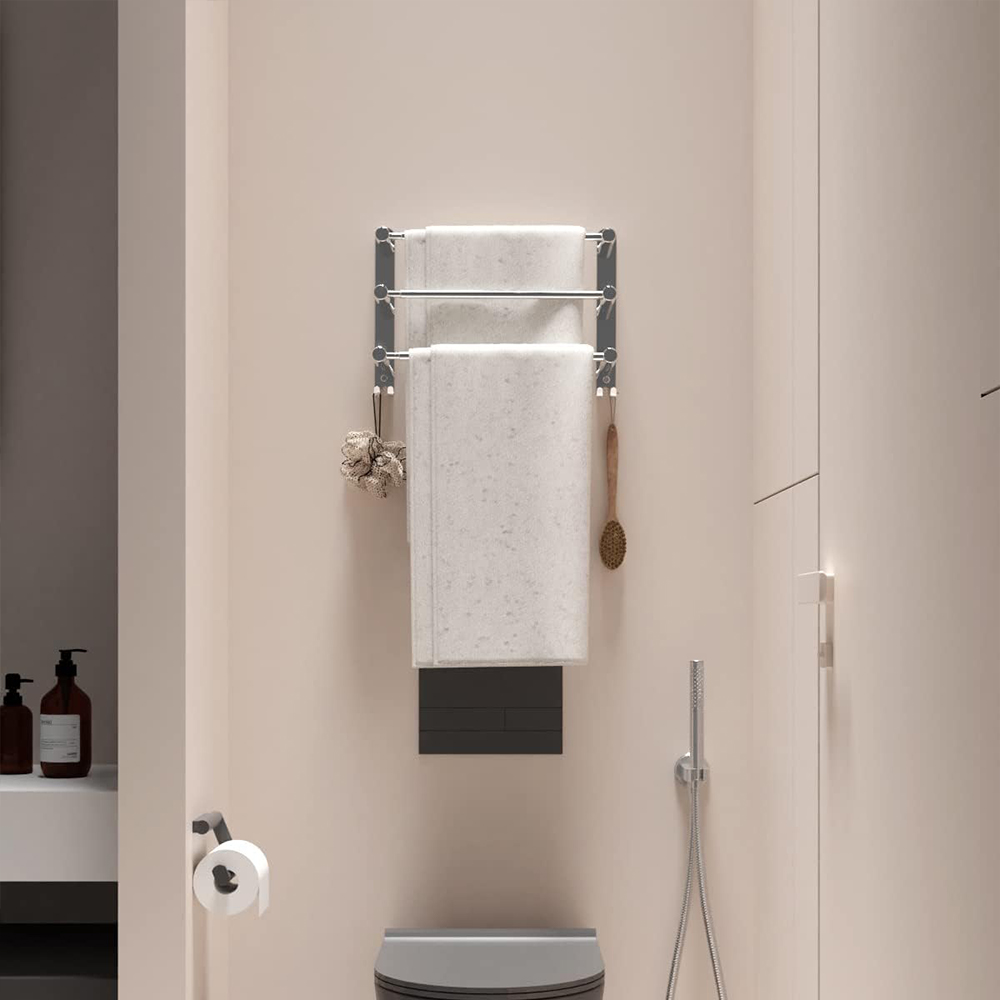 With this practical wall-mounted towel rack, it is very convenient to keep towels close at hand.