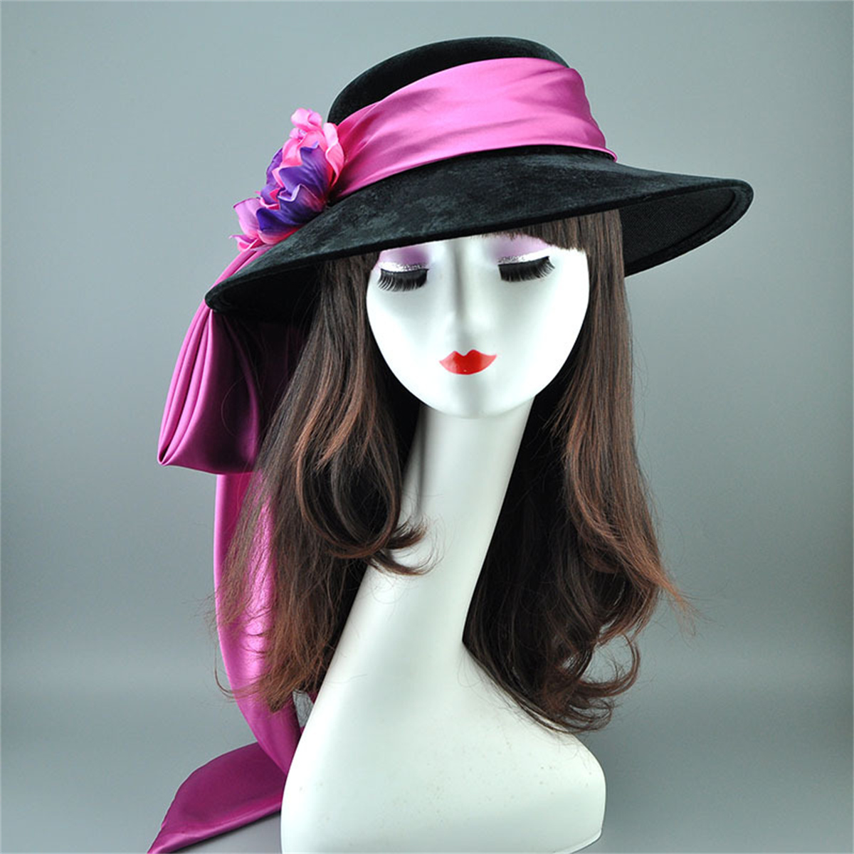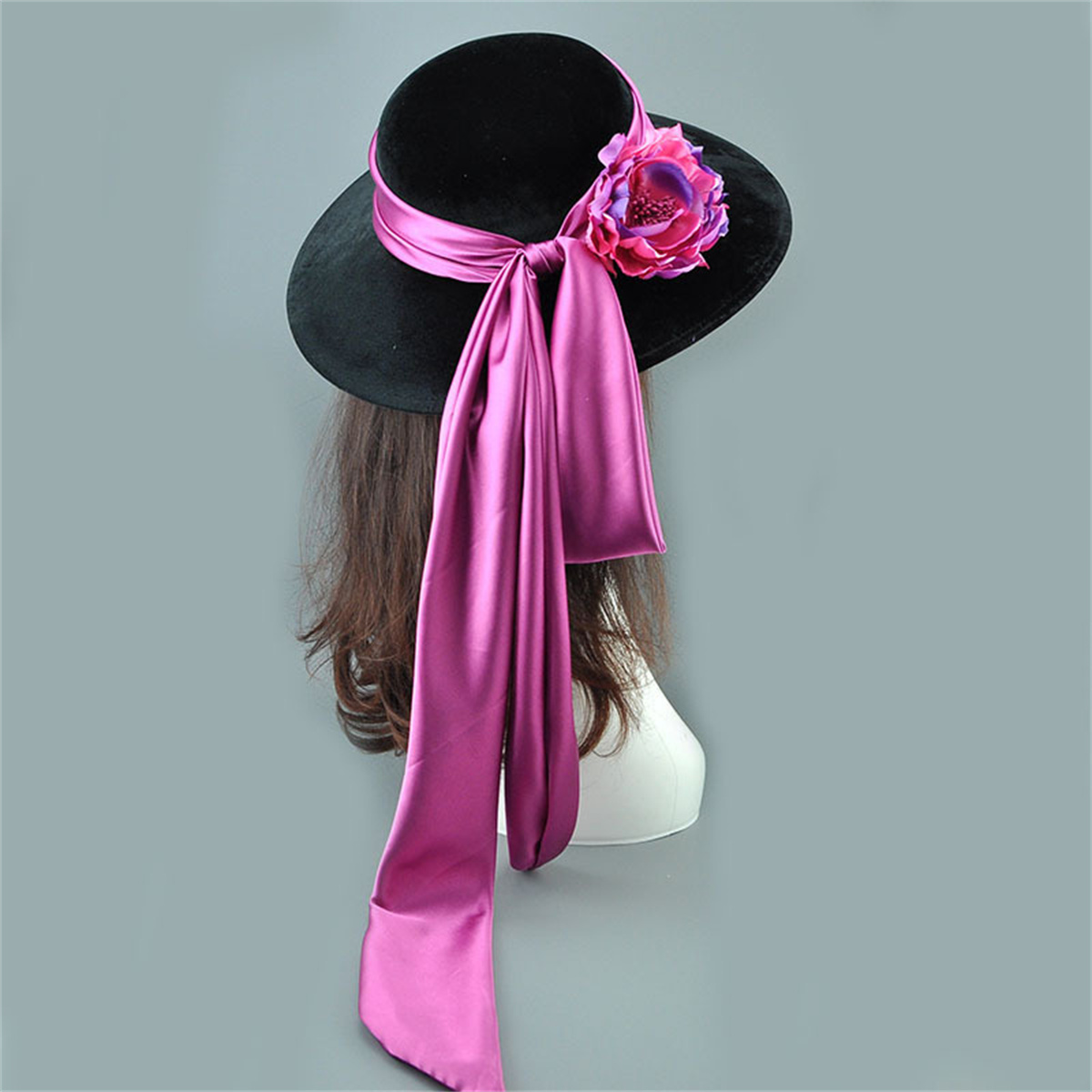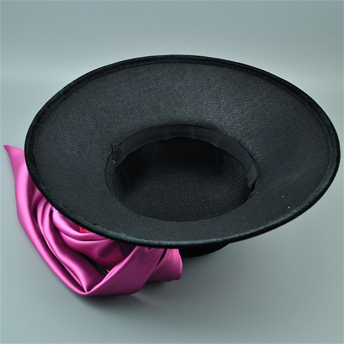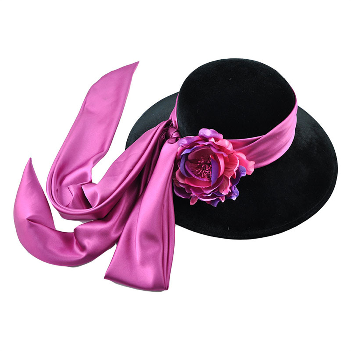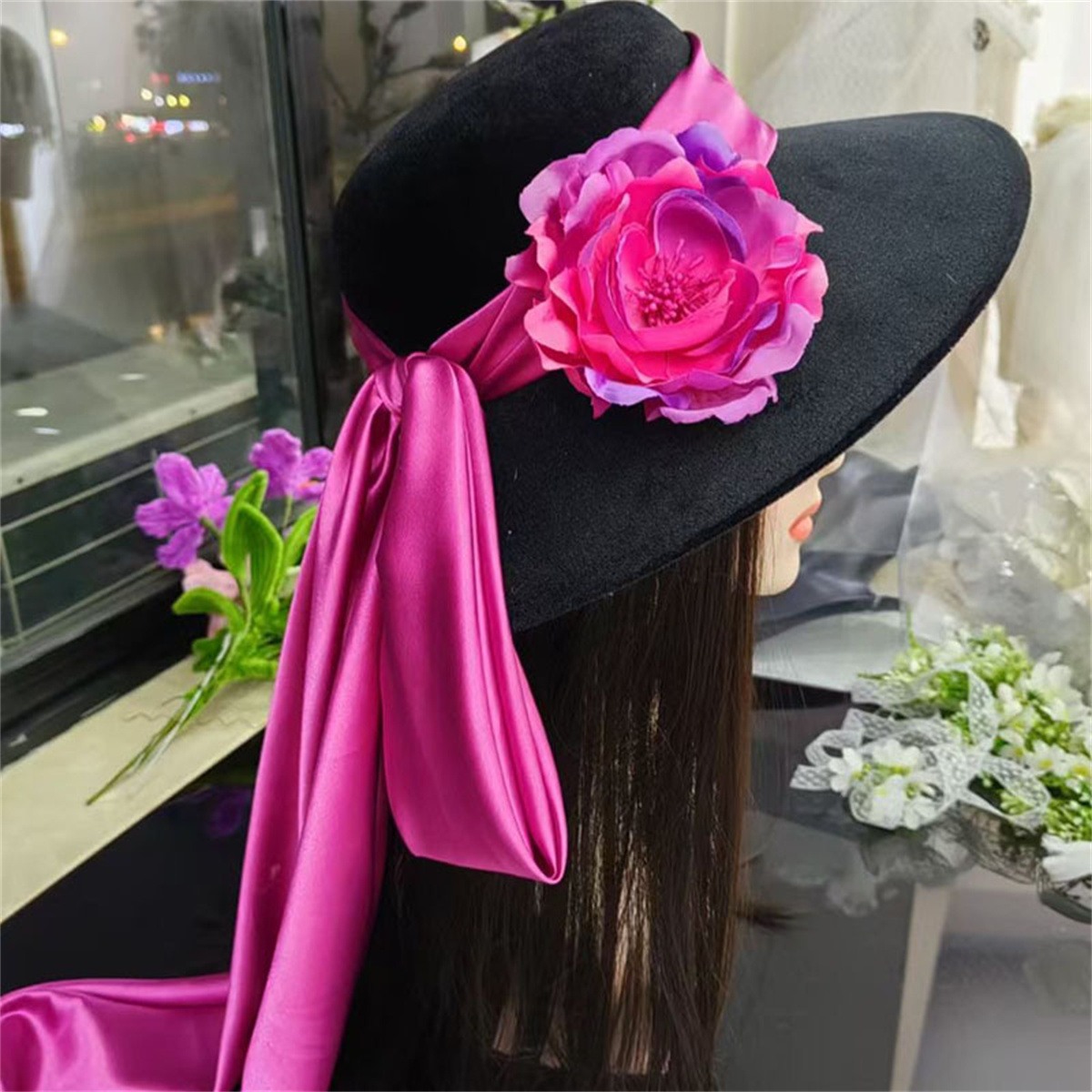 Retro Hepburn Hat for Women Black French Satin Bow Flower Top Hat for Tea Party