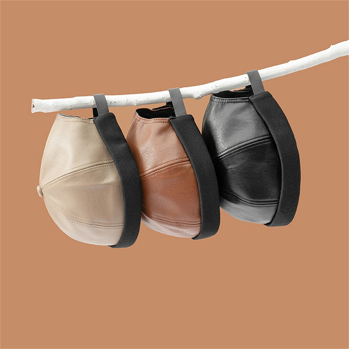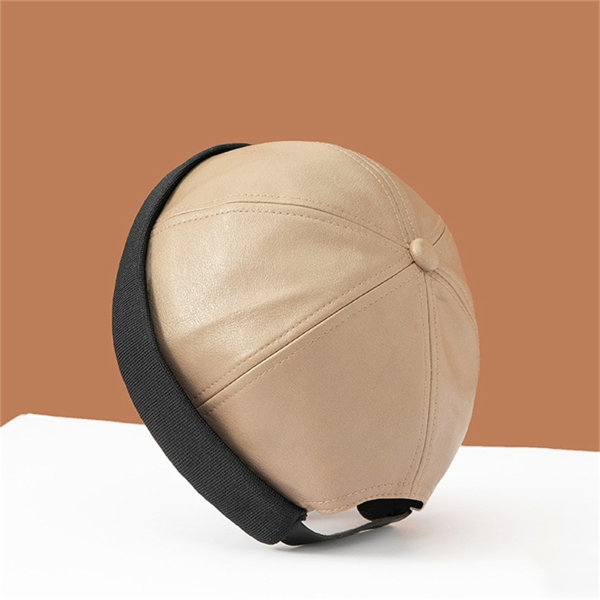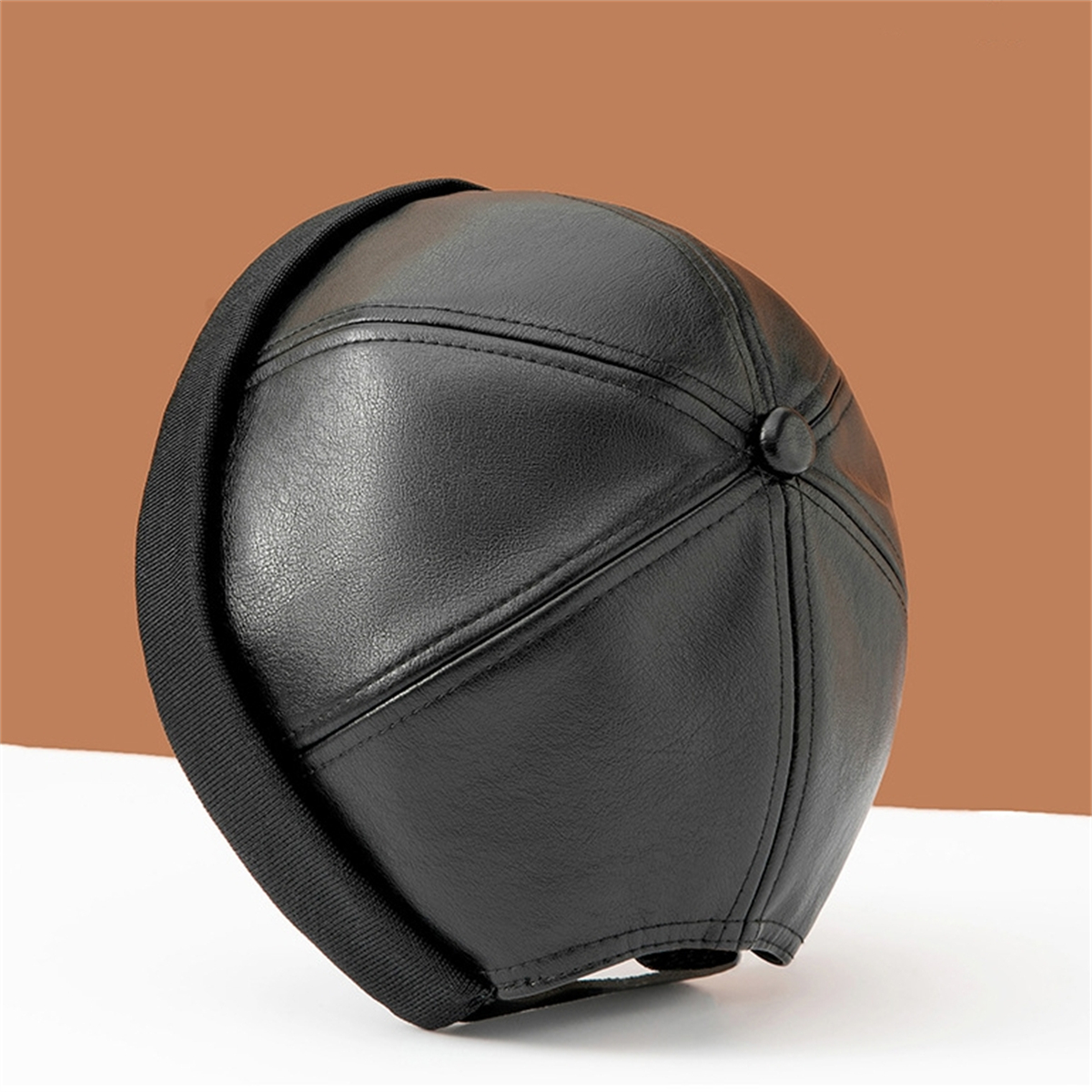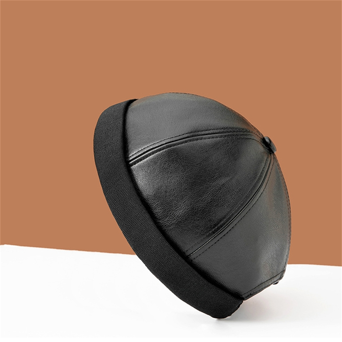 Men Leather Warm Skullcap Sailor Brimless Rolled Cuff Beanie Cap Solid Hat
