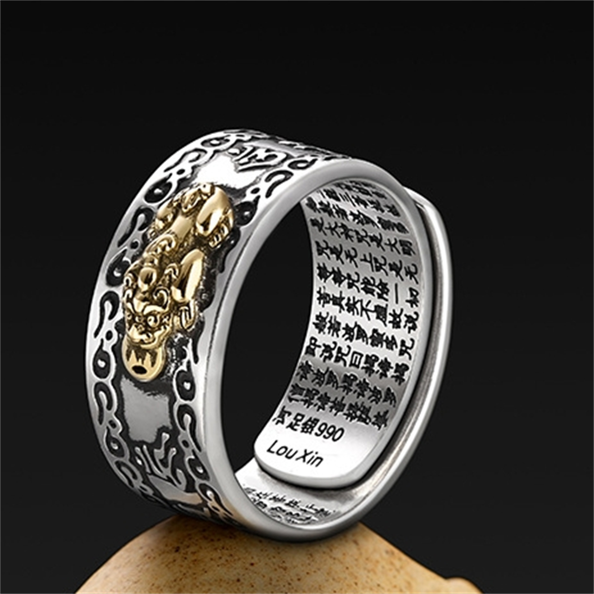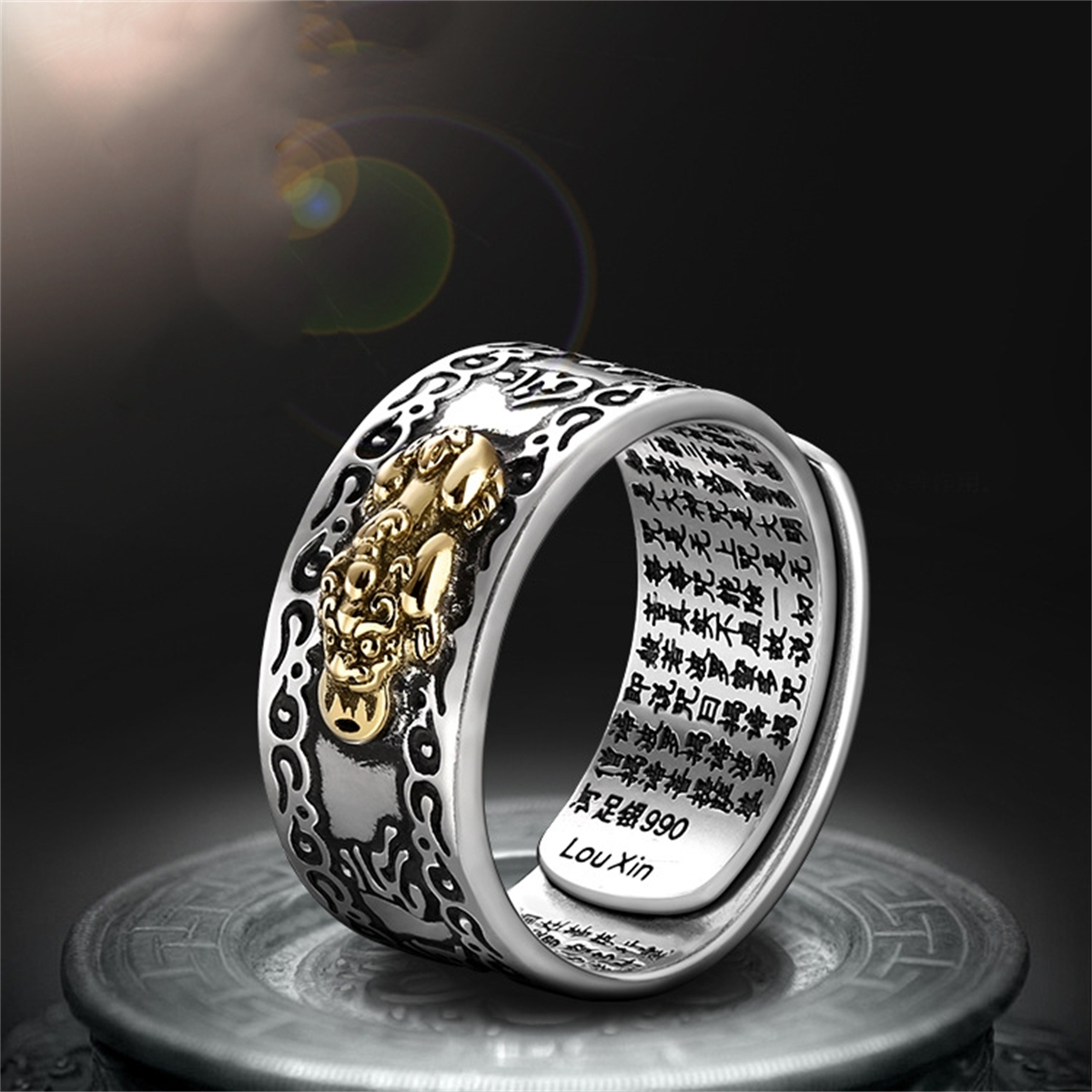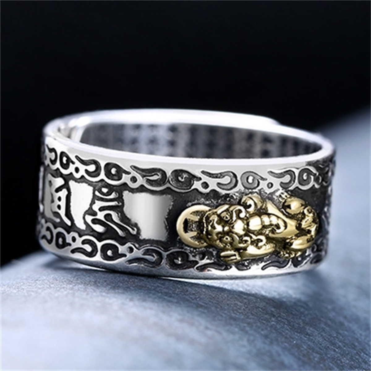 2x Men Women Pixiu Feng Shui Amulet Wealth Good Luck Open Ring Buddhist Jewelry