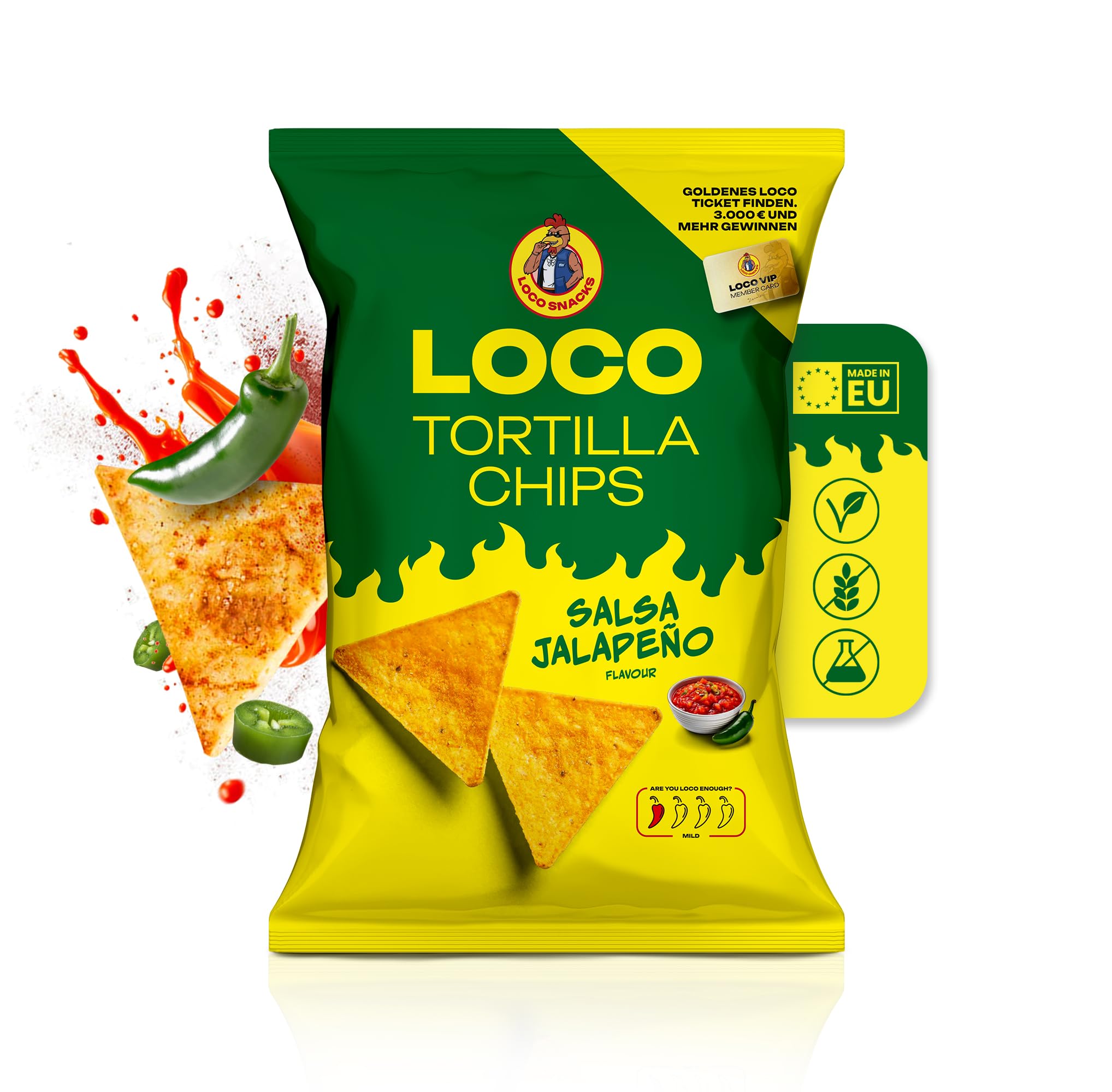 - Loco Geschmack, entwickelt mit Luciano – Diese Nachos Chips ballern! Perfekt gewürzt, mit echtem Salsa Jalapeño Flavor und maximalem Crunch. Die Tüten kommen in einer Chips Box, sodass sie knusprig bleiben.