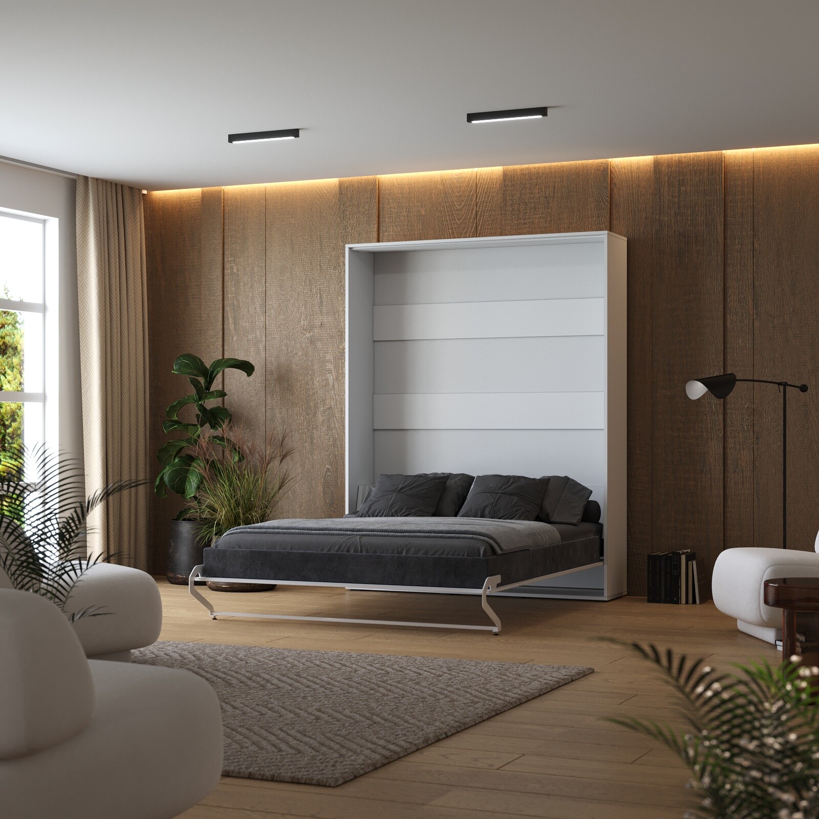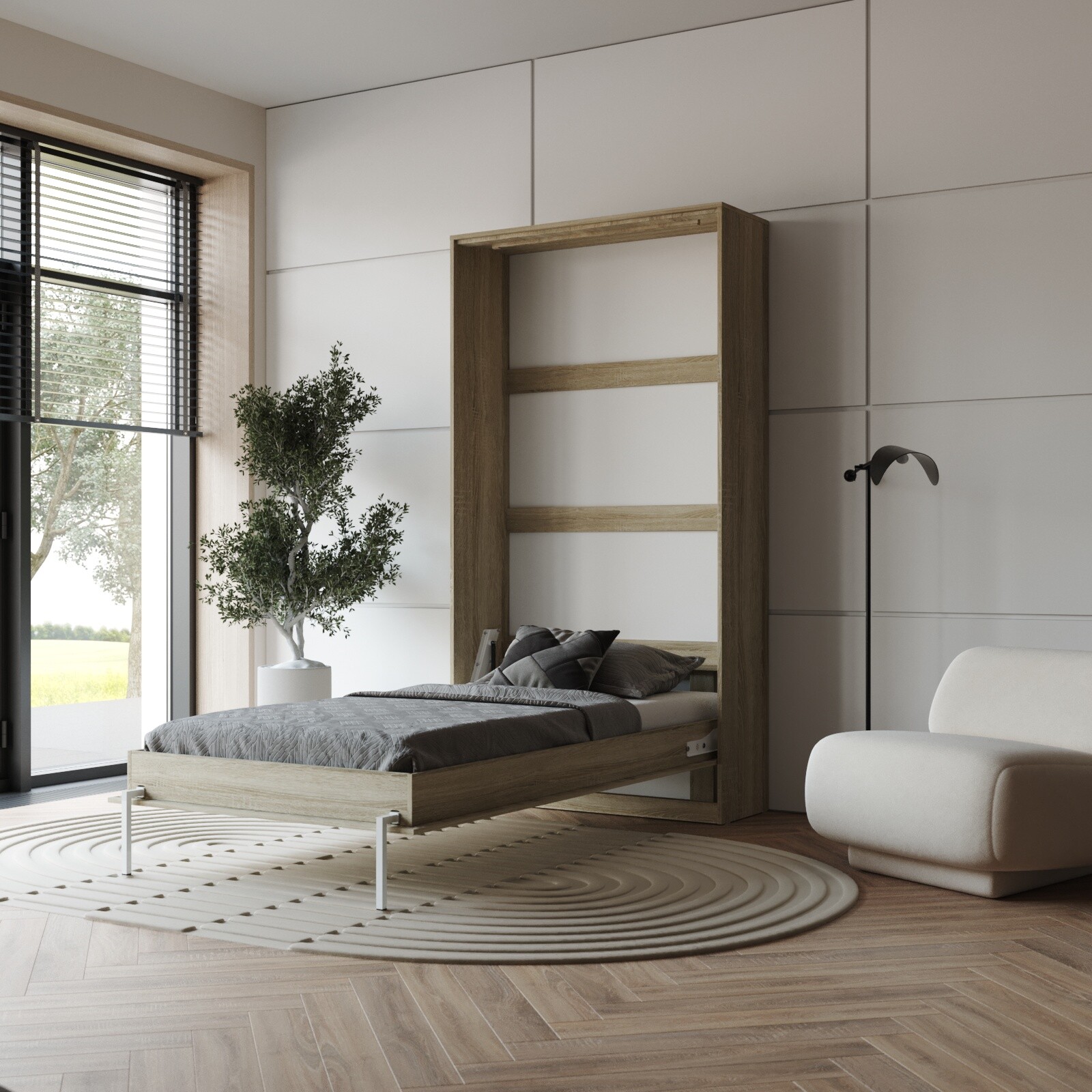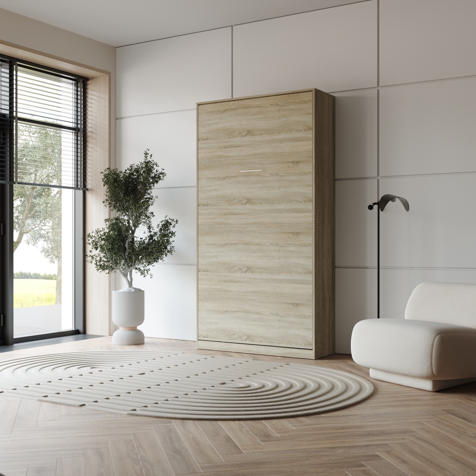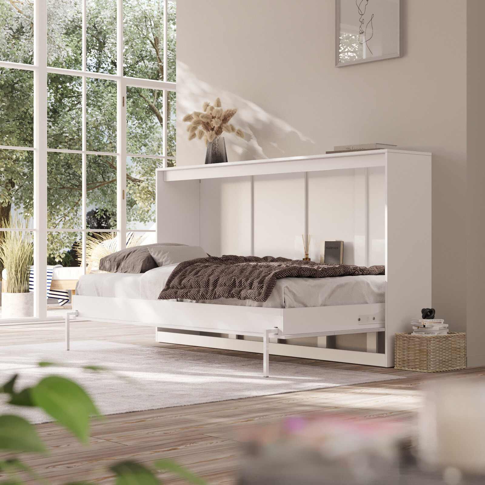 SMARTBett 100-Schrankbett - Wandbett, Wandklappbett fürs Gästezimmer, Büro, Wohnzimmer, Schlafzimmer, Ferienwohnung - Platzsparend und ideal geeignet für ein kleines Jugend- und Kinderzimmer oder als Gästebett für spontane Besuche. Trotz seines kleinen Maßes bietet das Schrankbett eine große Liegefläche für ein erholsames und bequemes Schlafen. Für das Schrankbett passt eine Matratze bis max. Höhe 19 cm.