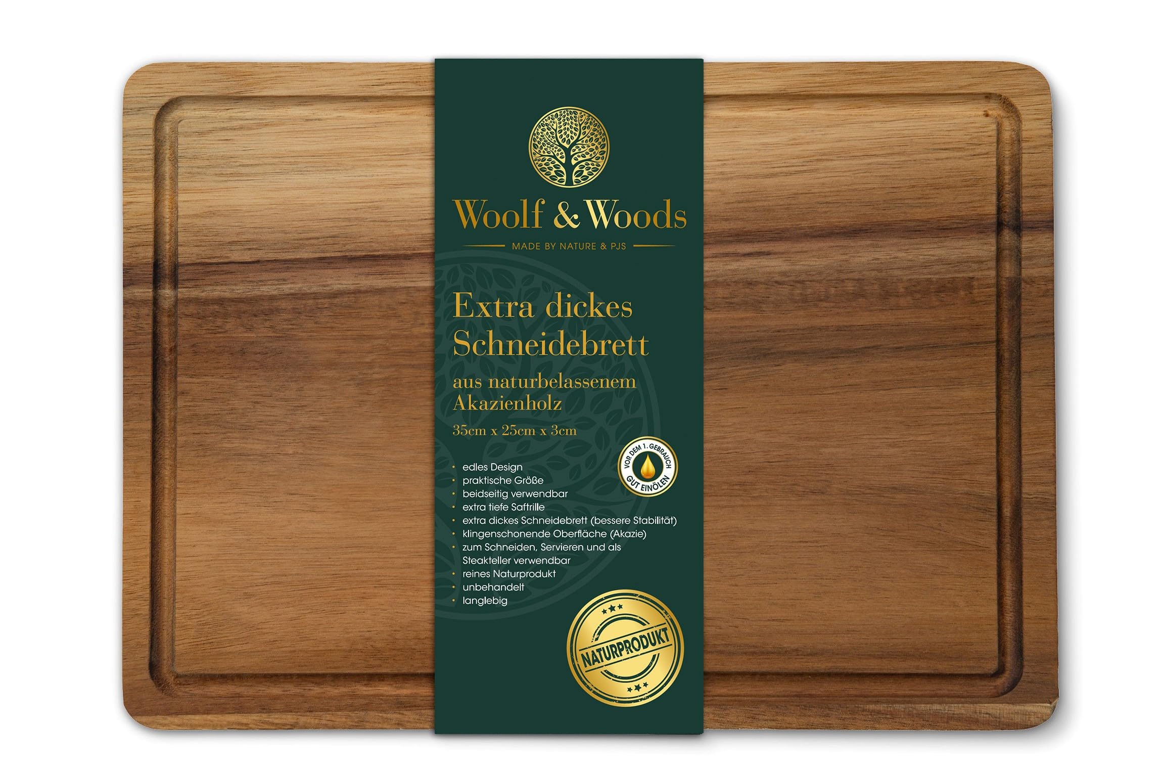 Planche à découper en bois extra épaisse - Produit naturel pur en acacia - Durable - Non traité - Planche de cuisine et plateau de service - 35 cm x 25 cm x 3 cm