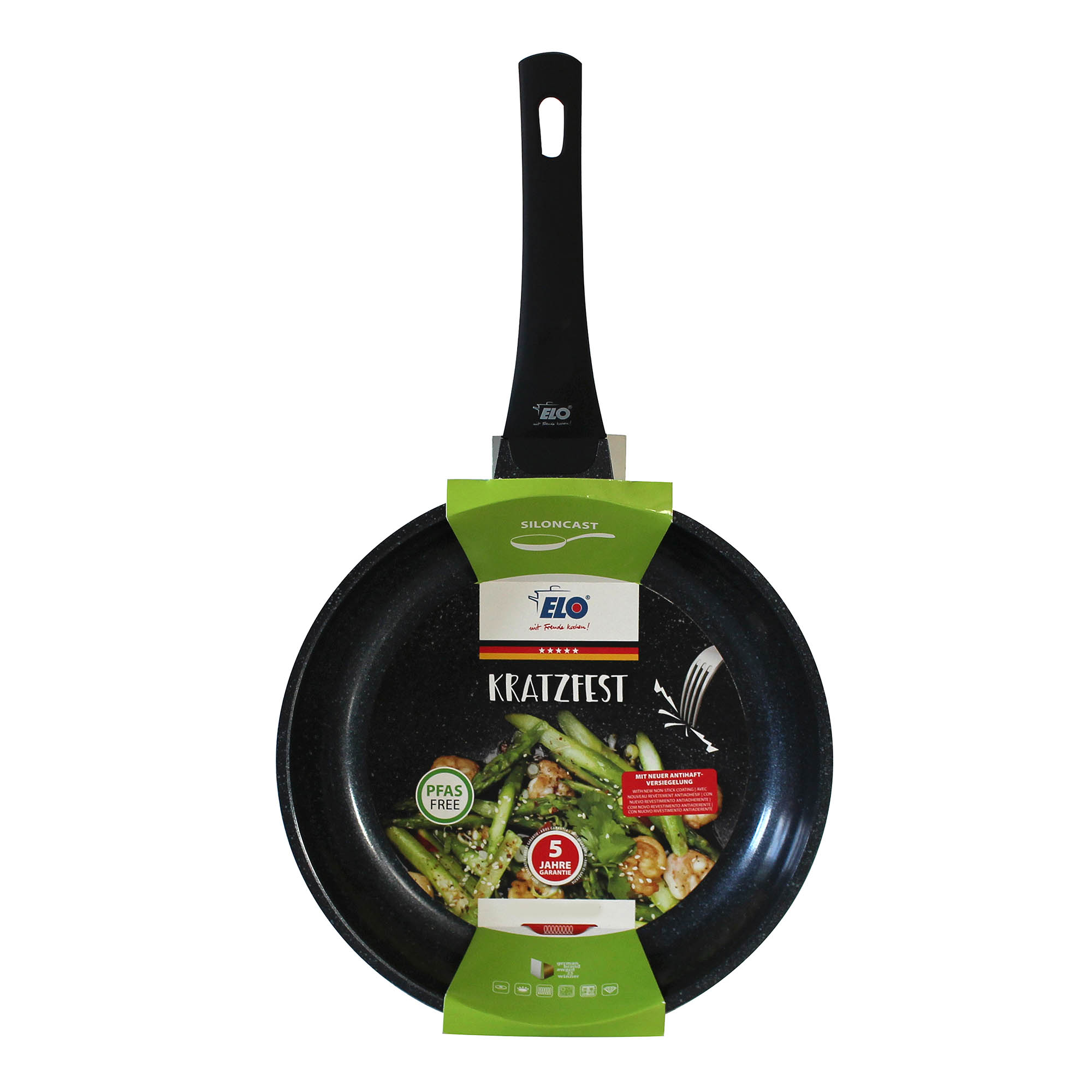 Die Bratpfanne aus der Serie SILONCAST aus hochwertigem Aluminiumguss verfügt über eine kratzfeste, PFAS-freie ELODUR-Professional-Antihaftversiegelung für leichte, fettarme und schonende Zubereitung. Der Aluminiumguss des Pfannenkörpers sorgt für eine schnelle und gleichmäßige Wärmeverteilung bis zum Rand, wodurch Zeit und Energie gespart werden. Dank des gelochten Induktionsbodens ist die Pfanne für alle Herdarten, auch Induktion, geeignet.