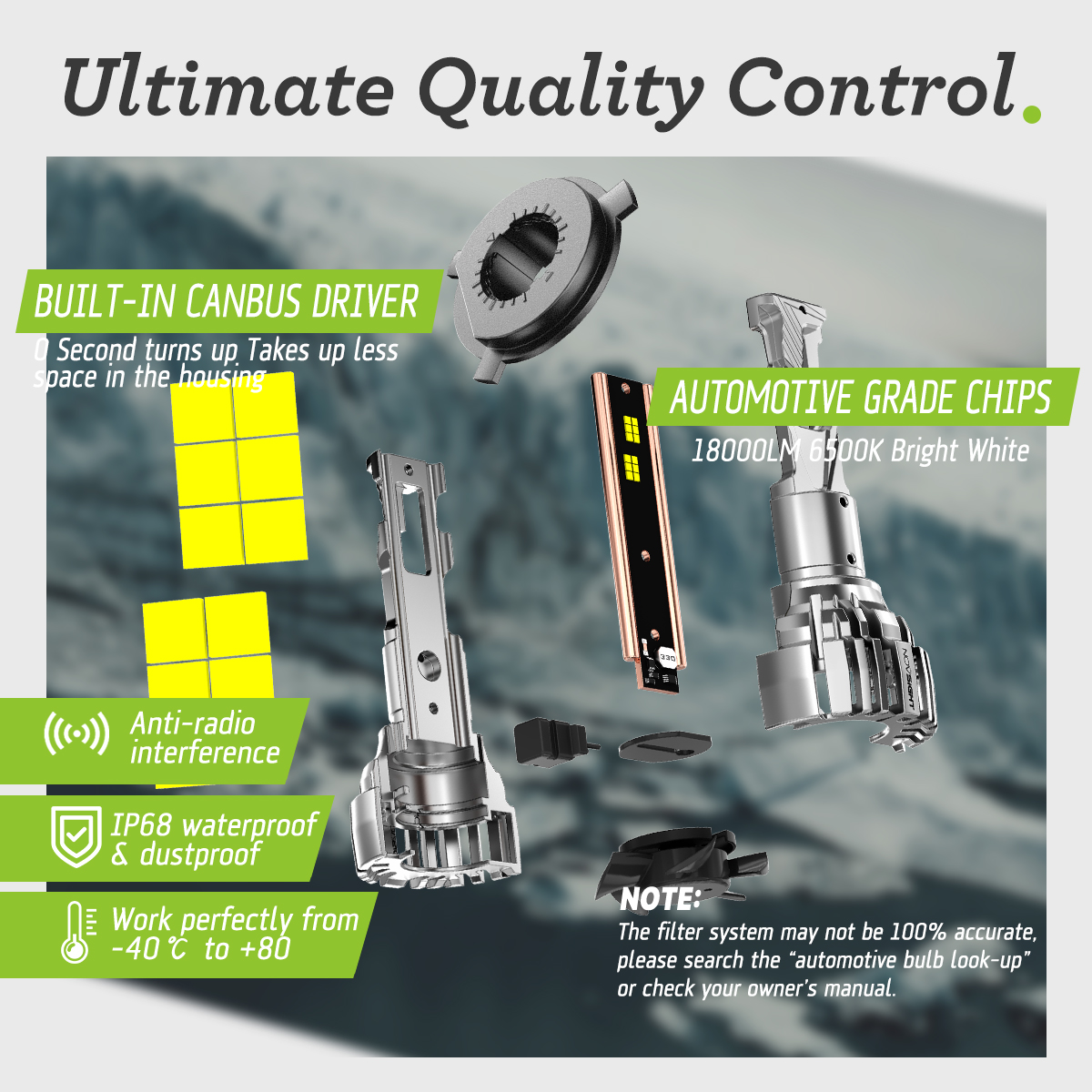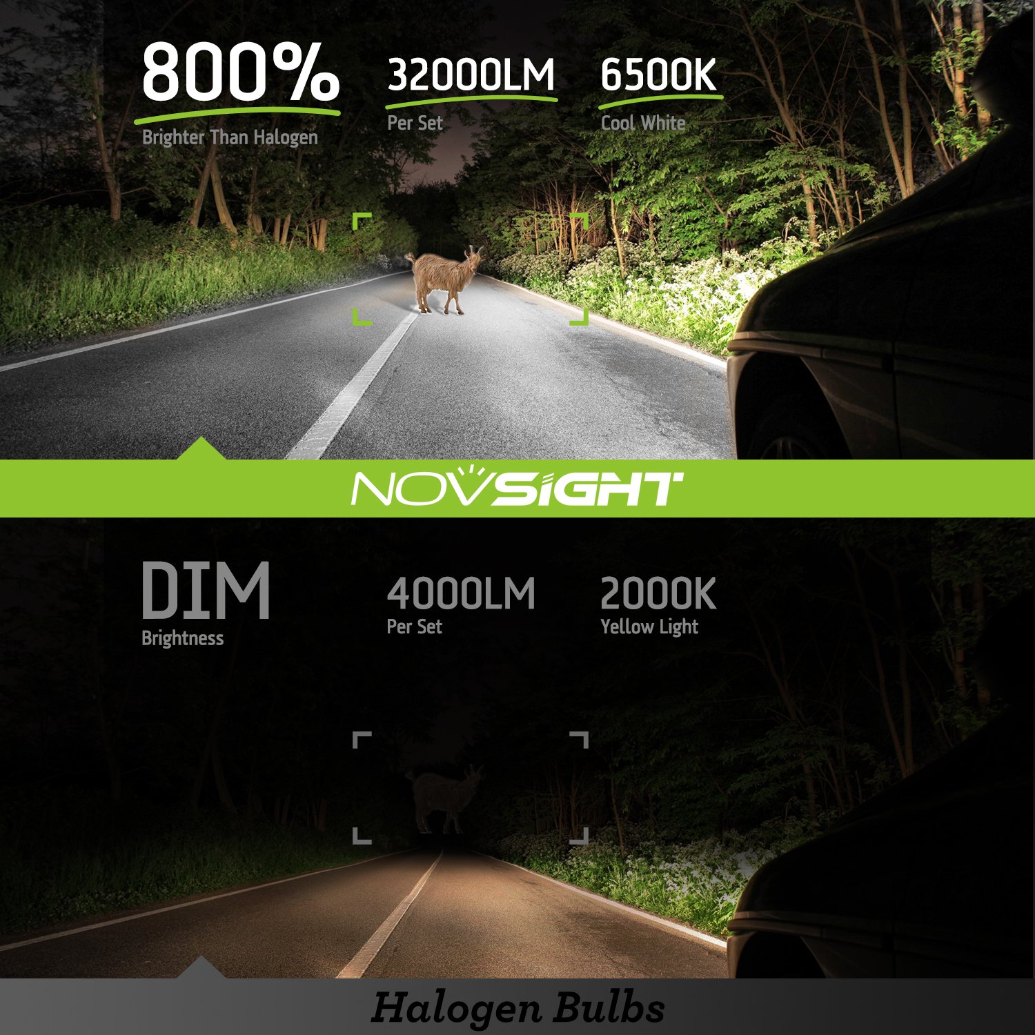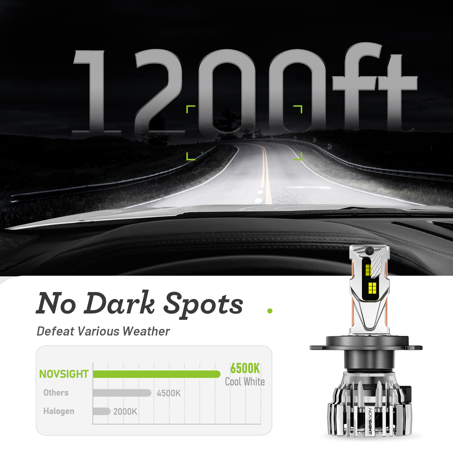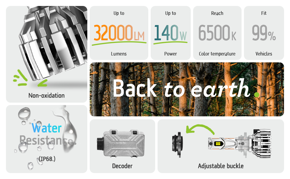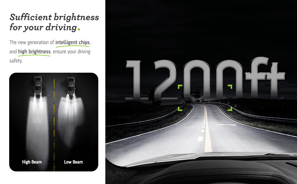 【800% brighter than halogen】NOVSIGHT LED powersports light bulbs adopts the latest research and development technology, using 4PCS 140W high-power LED chips. Each unit offers an ultra-bright light output of 32,000LM, ensuring that you can see every detail of the road ahead.