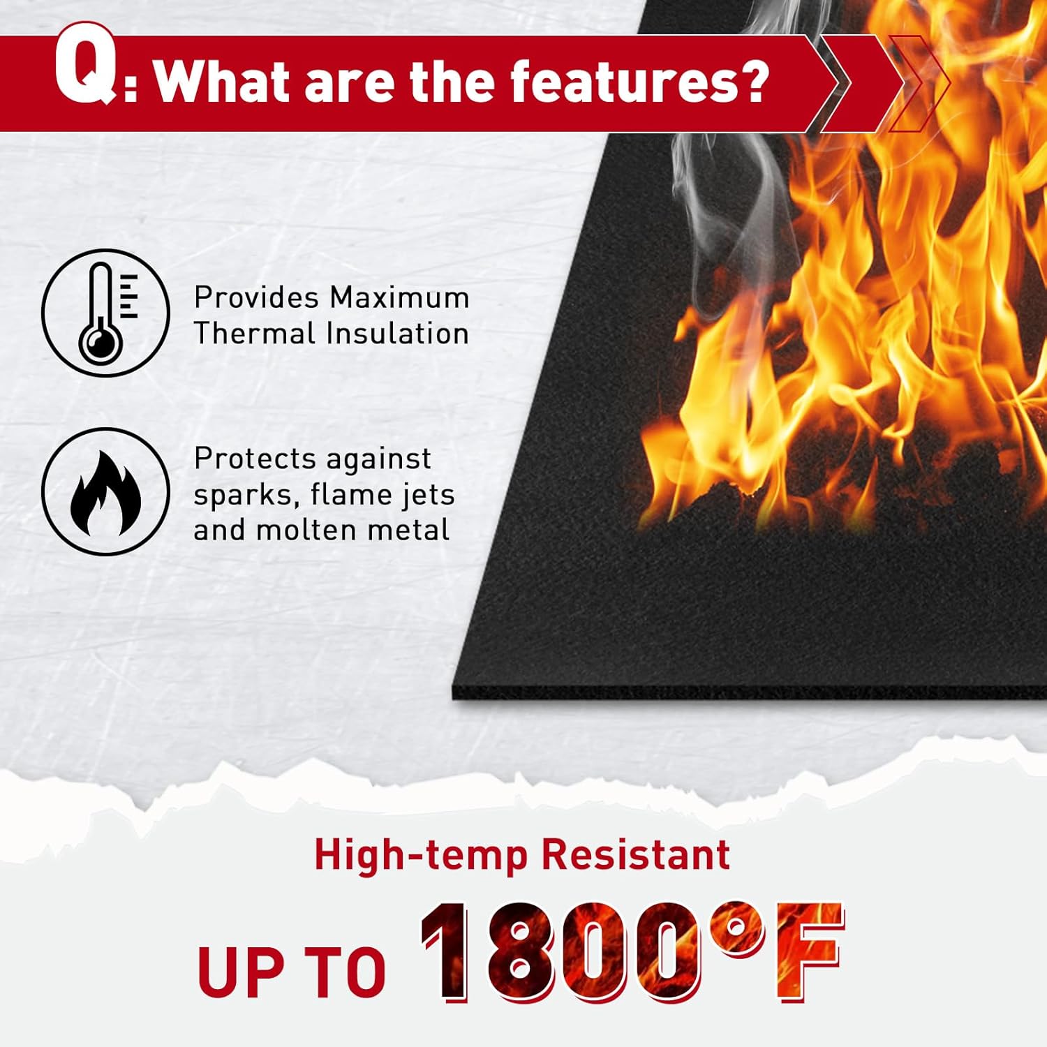 12" x 12" x 1/4" thick. Protects up to 3,000 F. Wont melt, burn or ignite. Will not de-grade or shrink. Won't shedor melt like fiberglass. Protects surfaces from heat and slag, helps dissapate heat from torches and welds. Perfect for working inside of cars, tights spaces and protecting small to medium sized surfaces. Reduces heat transfer takes place between the blanket and the protected surface, making it ideal for auto body and other thin sheet metal surfaces. Rated working temperature of 2,000F