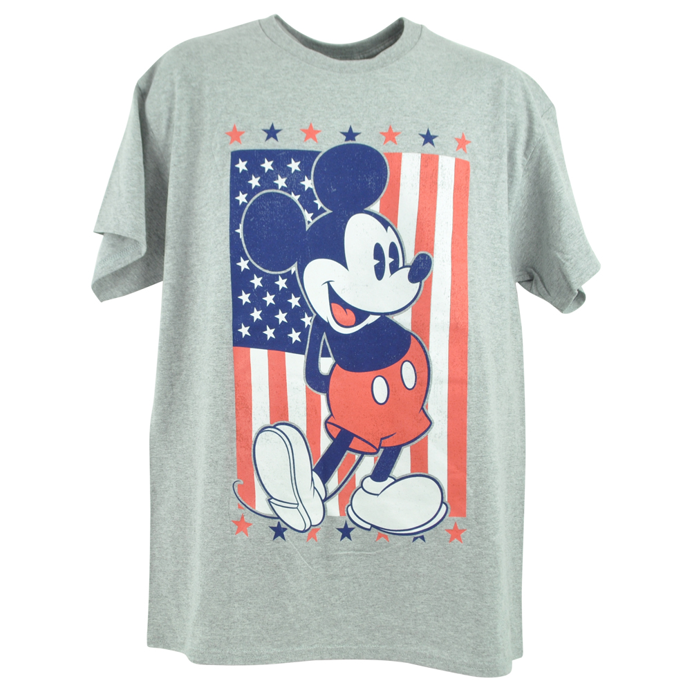 Disney Mickey Mouse Cartoon Patriotic Flag Gray Adults Men Tshirt Tee