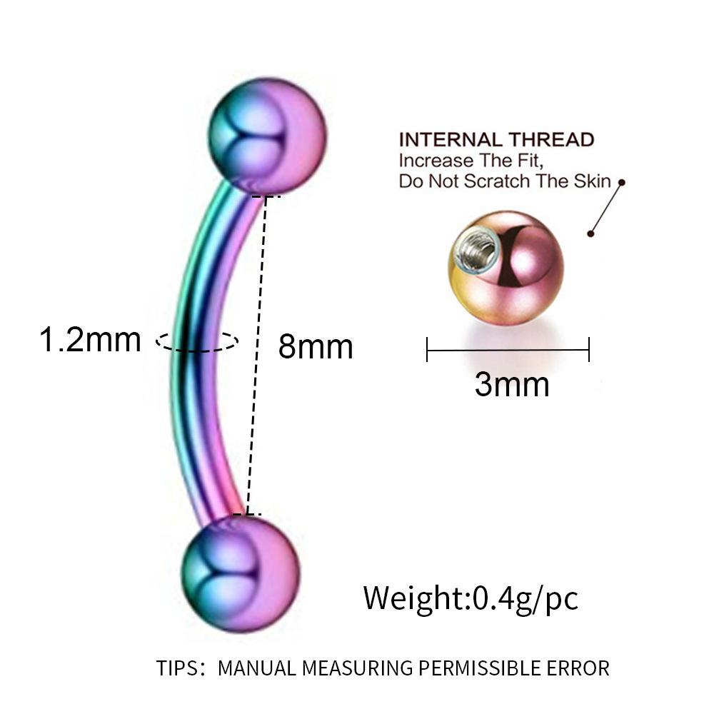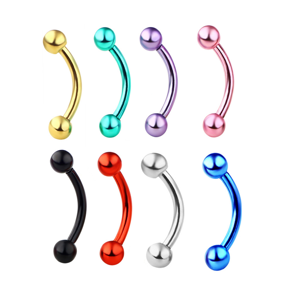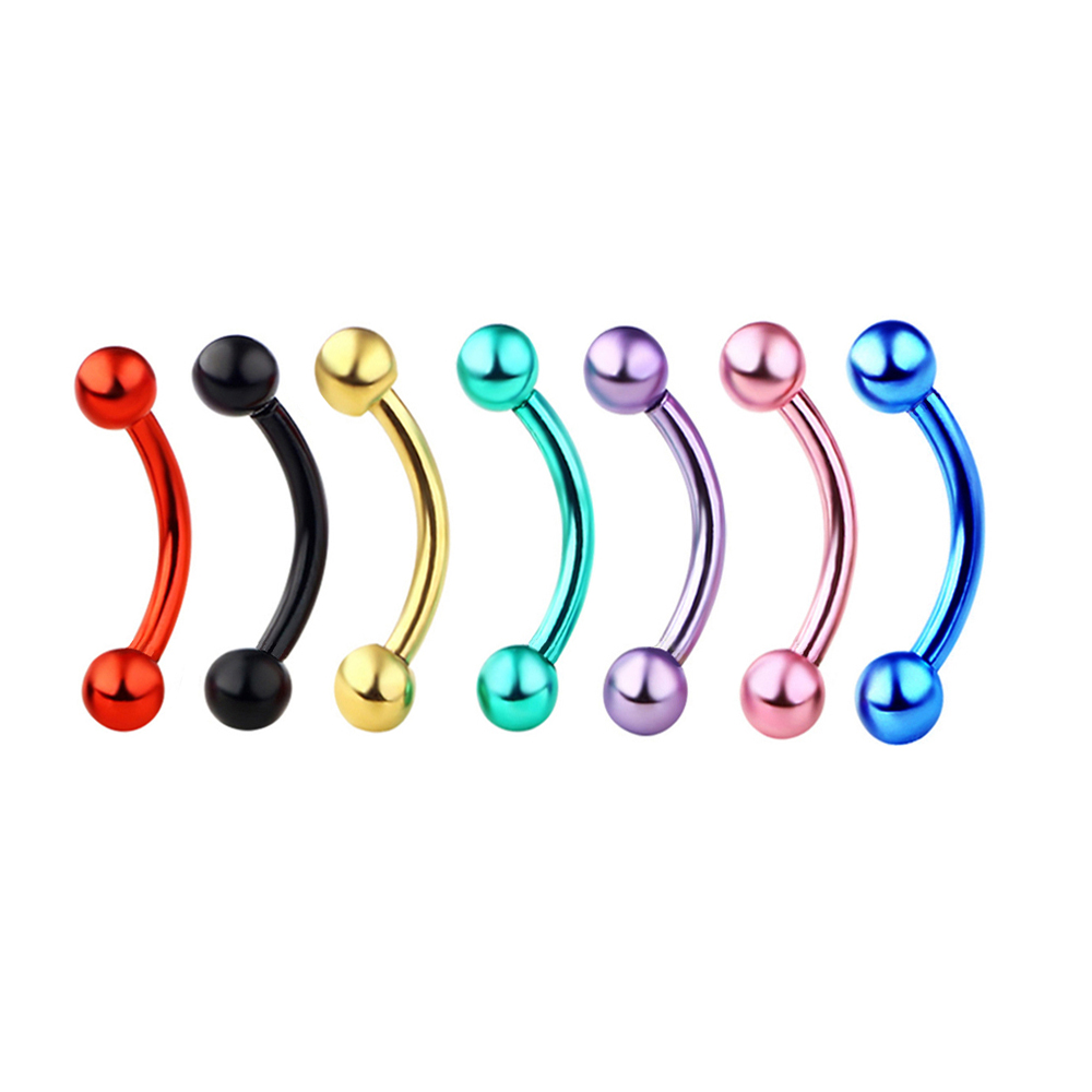 7X Multicolor 16G Steel Curved Bar Eyebrow Ring 3mm Ball Tragus Ear Lip Piercing