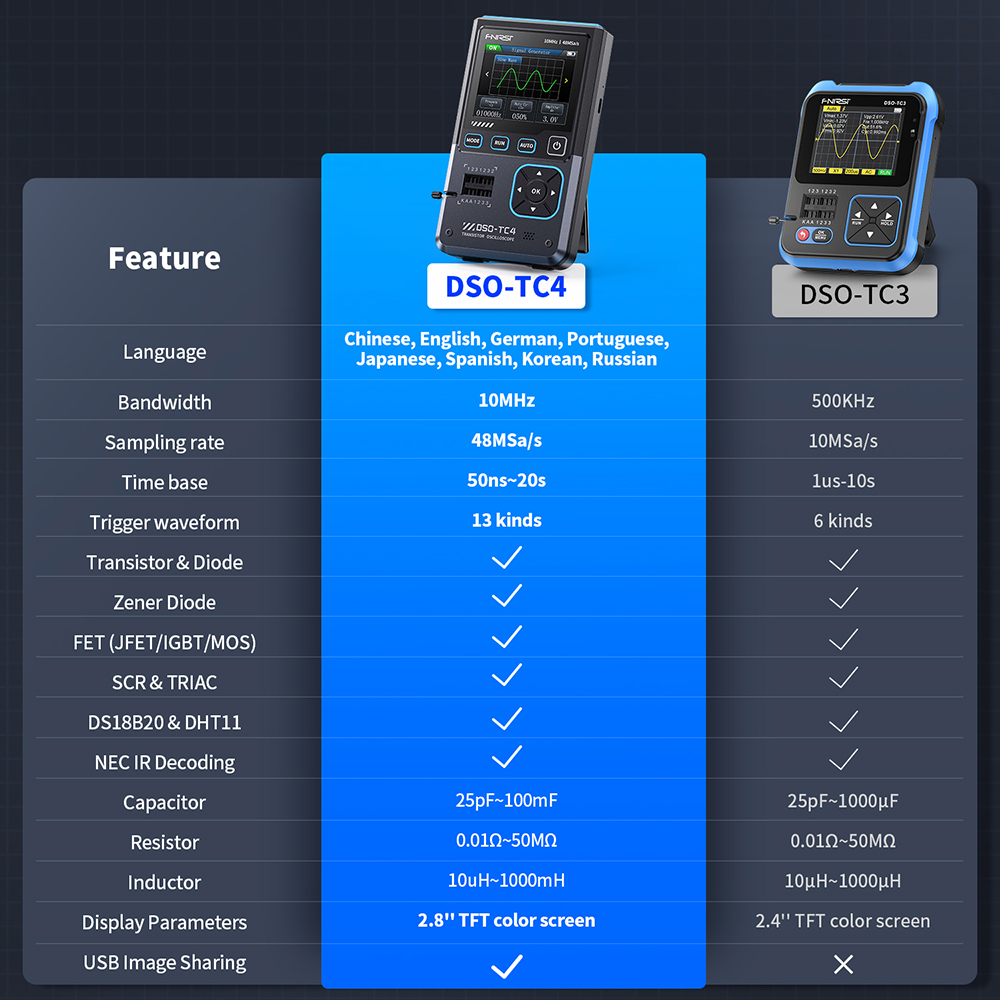 3.Multi-functional 3-in-1: Oscilloscope + transistor detector + signal generator for multiple uses