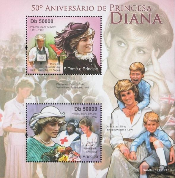 Stamps Sao Tome e Principe miniature sheet 848 (complete. issue) unmounted mint / never hinged 2011 Princess DianaProduct: Stamps Area: Sao Tome e Principe Issue reason: 2011 Princess Diana Title: miniature sheet 848 (complete. issue) Catalogue numbers: 848 Year: 2011 Condition: unmounted mint / never hinged