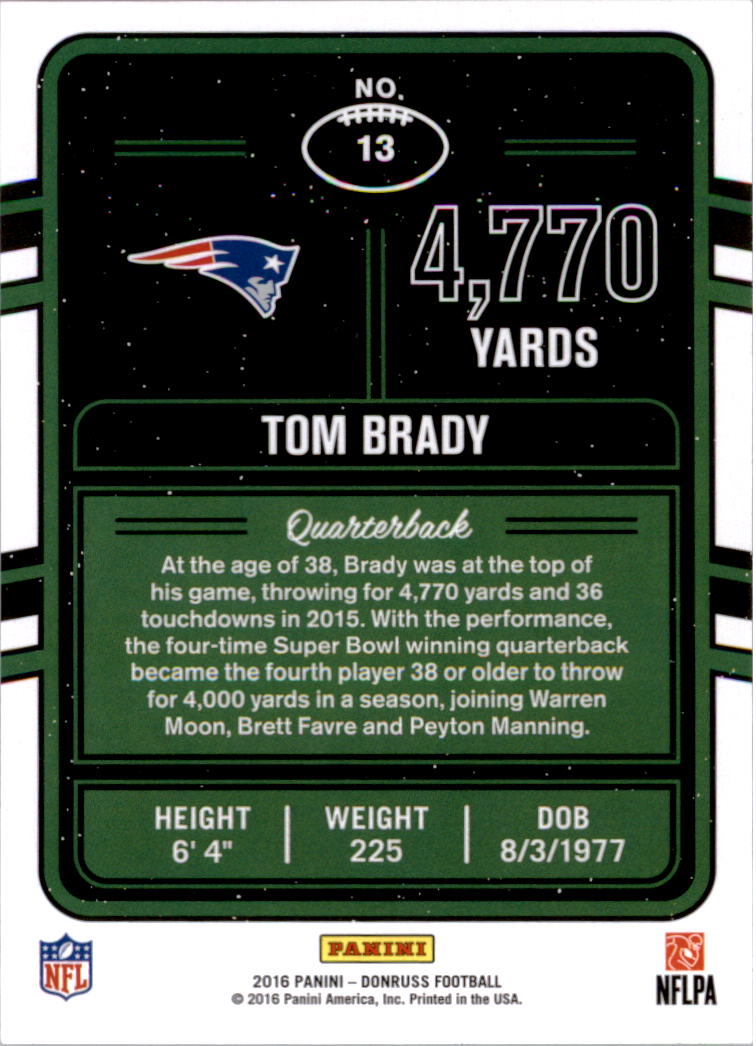 2016 Donruss Production Line Yardage #13 Tom Brady - FB