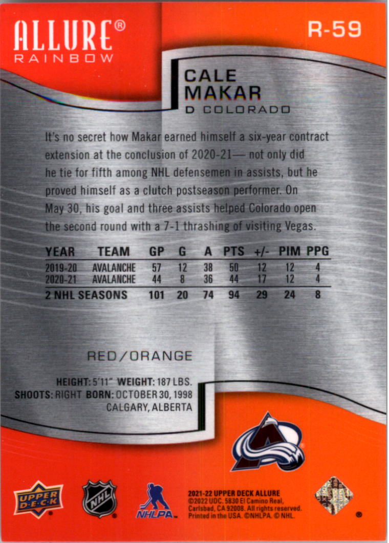 2021-22 Upper Deck Allure Rainbow Red Orange #R59 Cale Makar - HKY