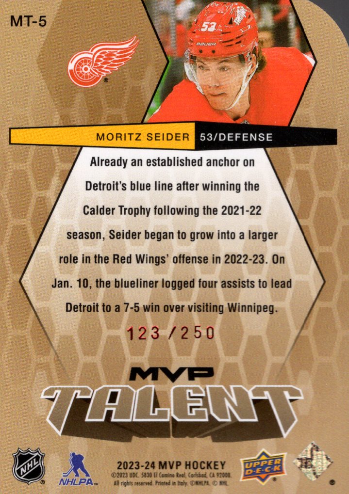 2023-24 Upper Deck MVP Colors and Contours #MT5 Moritz Seider /250 - HKY