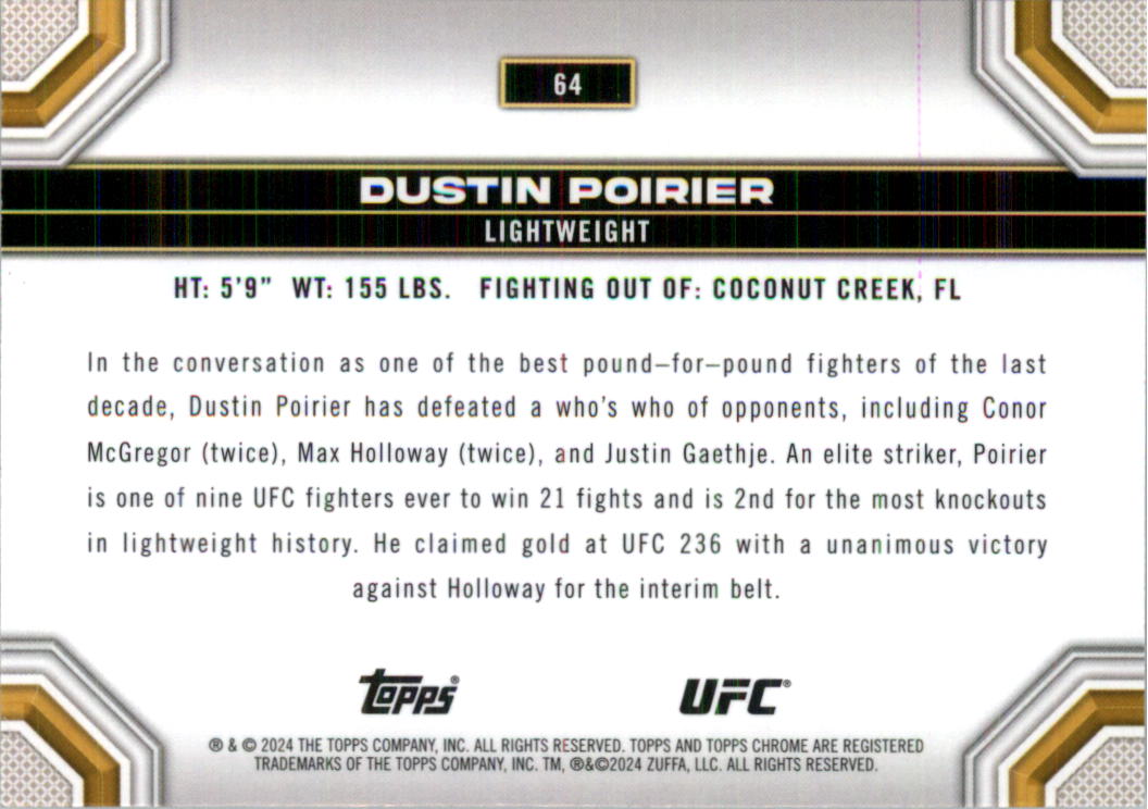 2024 Topps Chrome UFC Negative Refractors #64 Dustin Poirier - MMA
