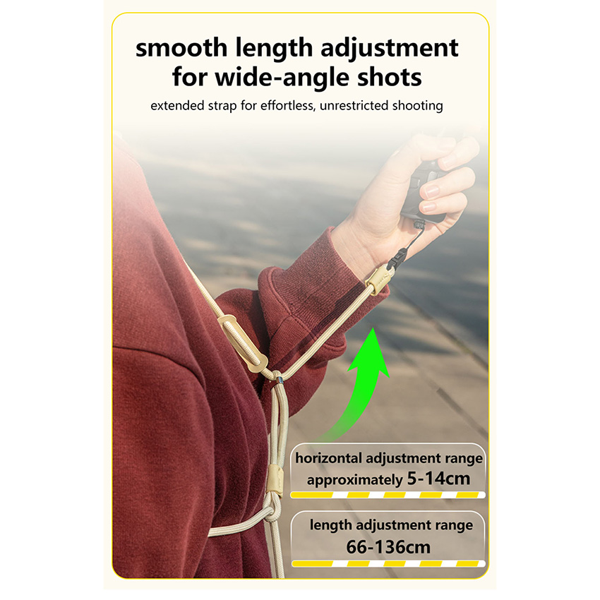 l Adopting PU leather adjustable buckle design, you can easily adjust the length of the lanyard according to your own needs, the adjustment range is 66-136cm, the horizontal line adjustment range is about 5-14cm, mainly used for hanging neck, crossbody, handheld, make carrying more convenient