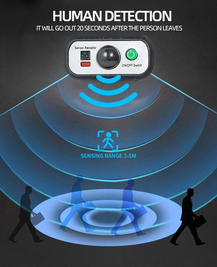 Mode 1: human induction + light control. During the night time or at the dark area, it will auto turn on light when it sensing human movement, and it delays 20-25 seconds, when people walk out of it's sensing range then it will turn off.