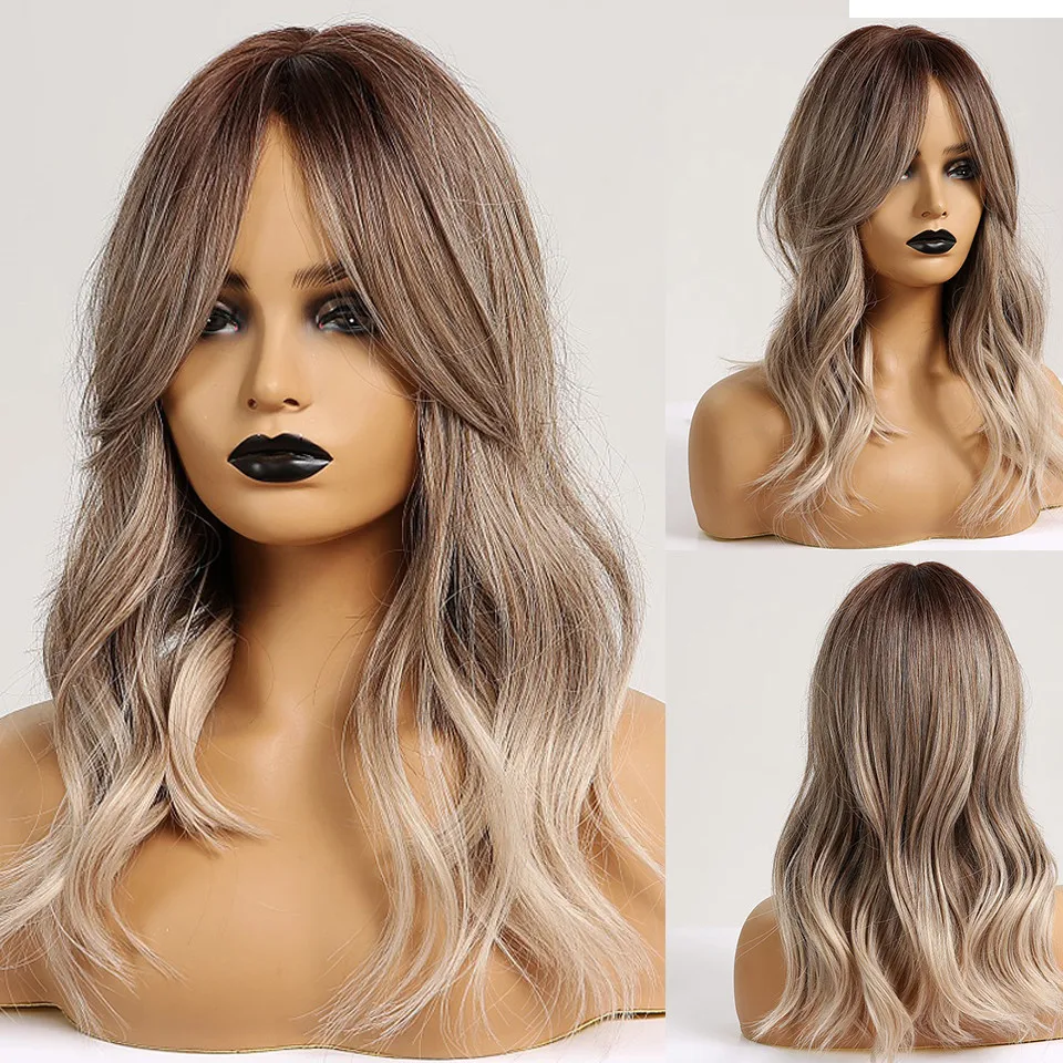This ombre brown long wavy wig with a center parting, made of synthetic fiber, boasts the following advantages: