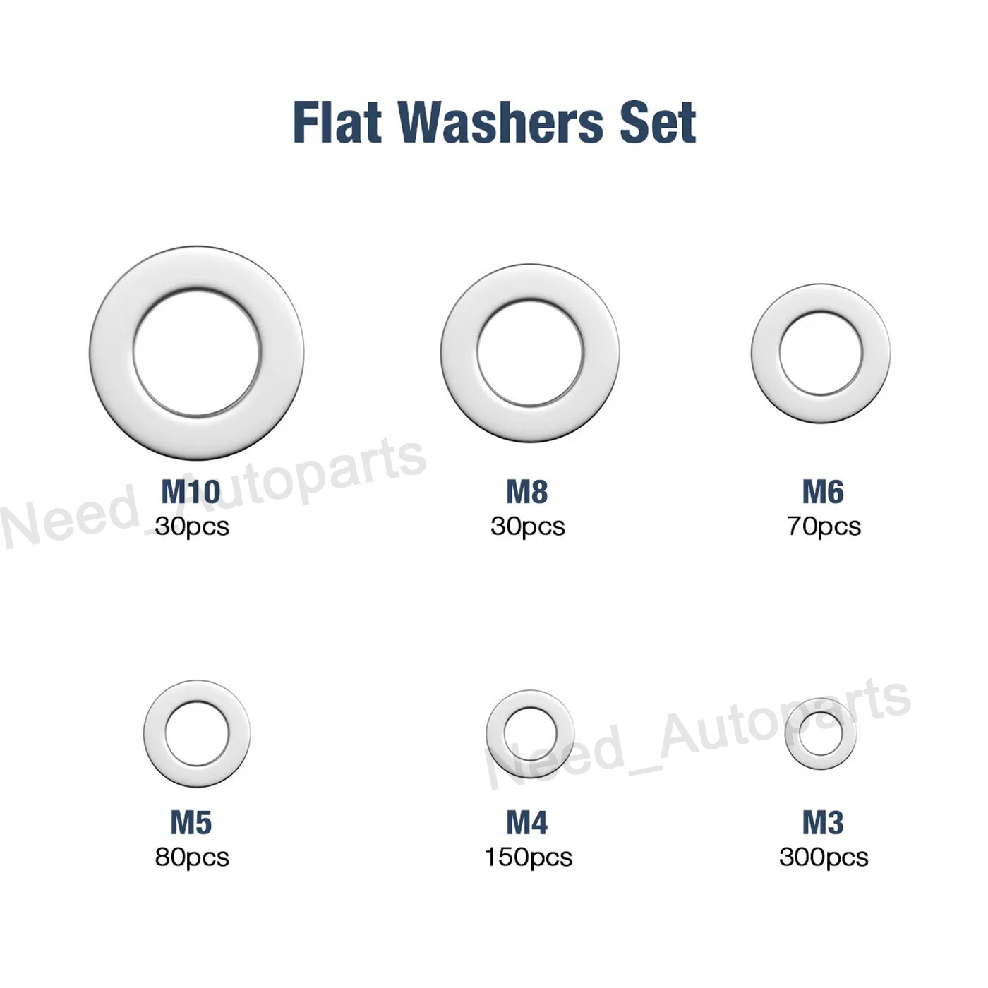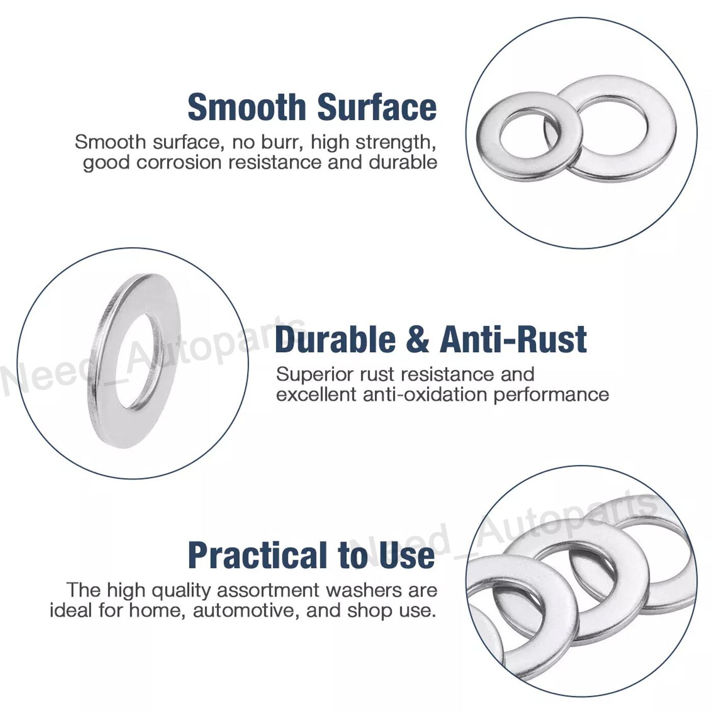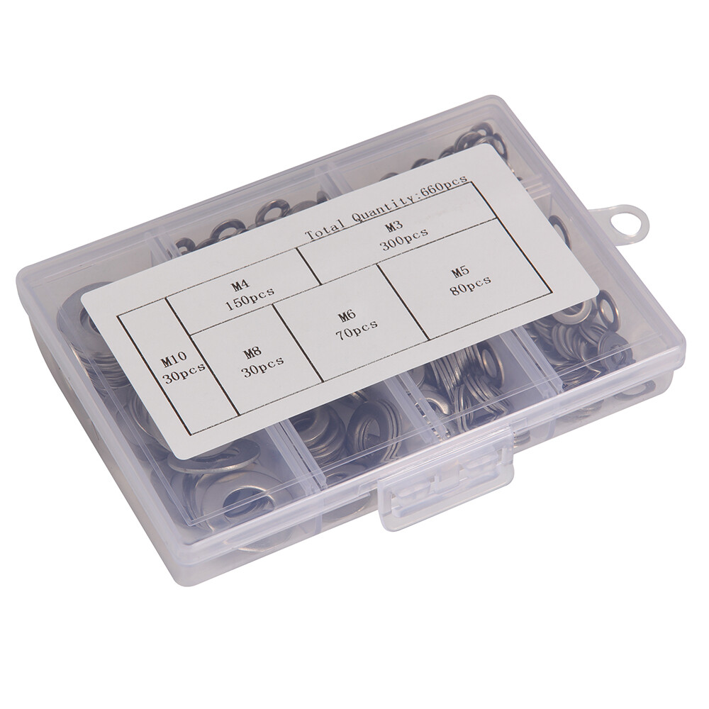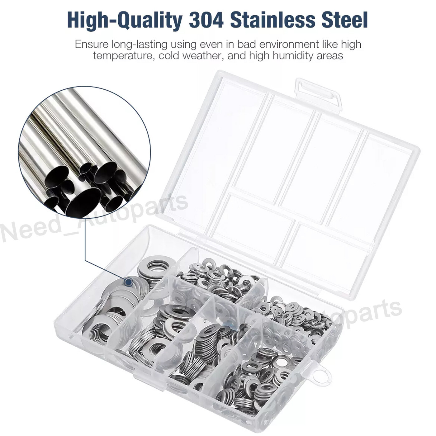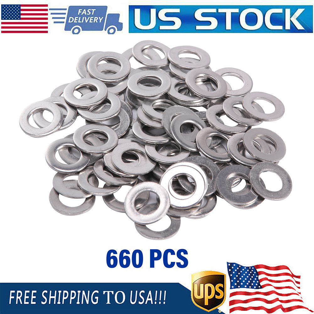 660 Pieces of 304 Stainless Steel Washers Flat Washer Assortment Set Kit 6 Sizes