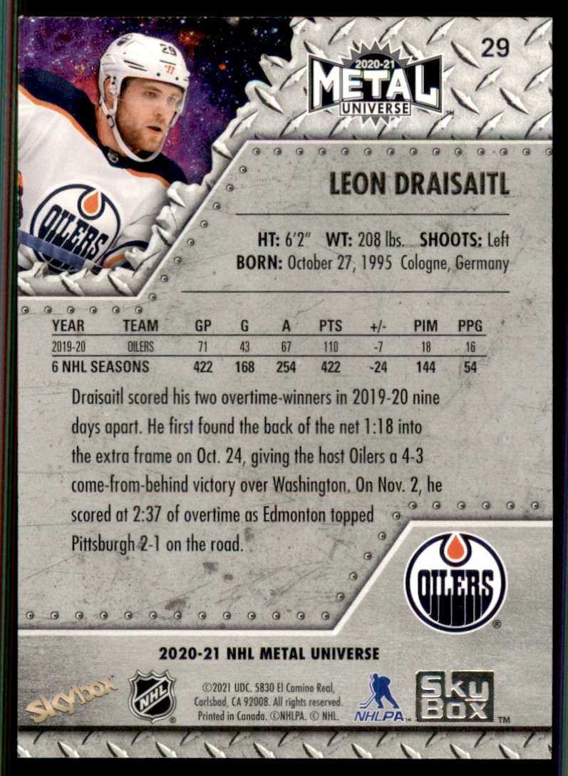 2020-21 Metal Universe #29 Leon Draisaitl Edmonton Oilers