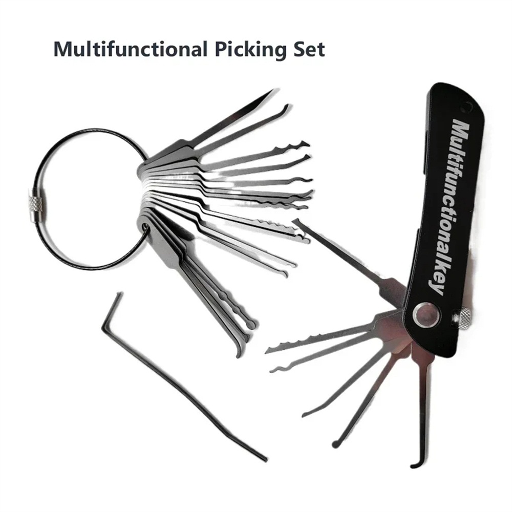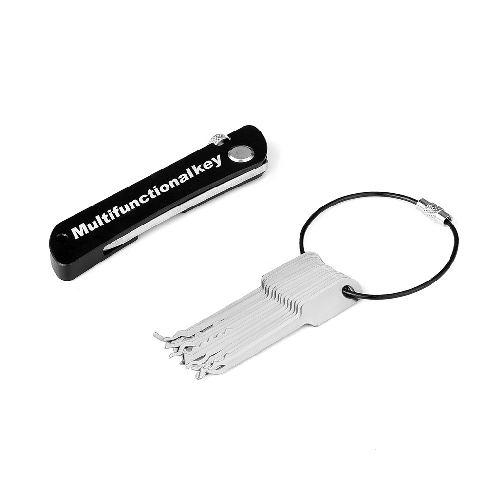 21 in 1 lock picking set with super compact size, ideal for the beginners and professionals to practice lock picking and improve skills. Features: Sturdy and durable, stainless steel material. 21 important tools combined in 1 compact set. Foldable design for easy storage and carry. Training set helps you practice lock picking and improve skills. Ideal for the beginners and professionals. Specifications: -100% new and high quality -Material: Stainless Steel -Color: Silver -Item Size: about 8.5 * 2.0 * 0.7cm / 3.35 * 0.79 * 0.28in -Item Weight: about 50g / 1.76oz -Package Size: 10.1 * 3.5 * 1.2cm / 3.98 * 1.38 * 0.47in -Package Weight: 57g / 1.99oz Package List: 1 * Lock Picking Set