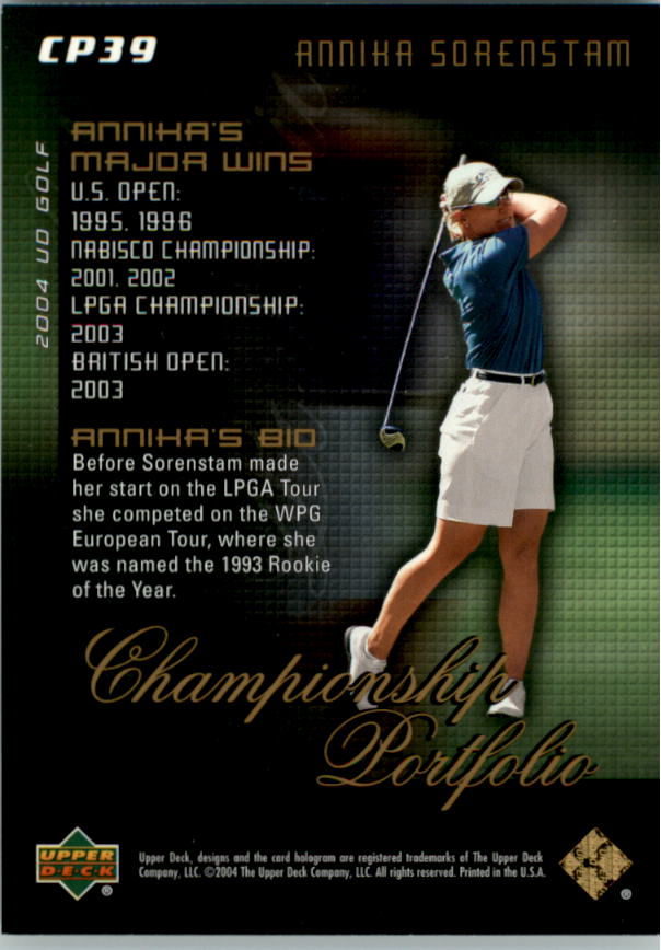 2004 Upper Deck Champion Portfolio #CP39 Annika Sorenstam - Golf
