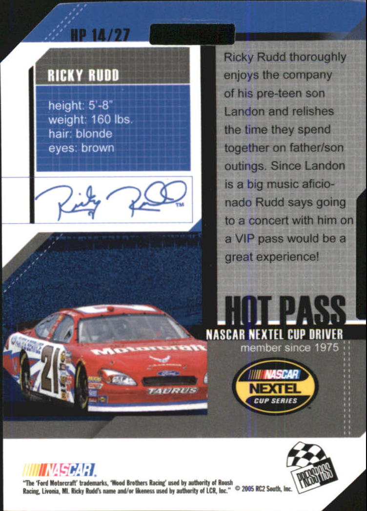 2005 Press Pass Trackside Hot Pass #14 Ricky Rudd - RAC