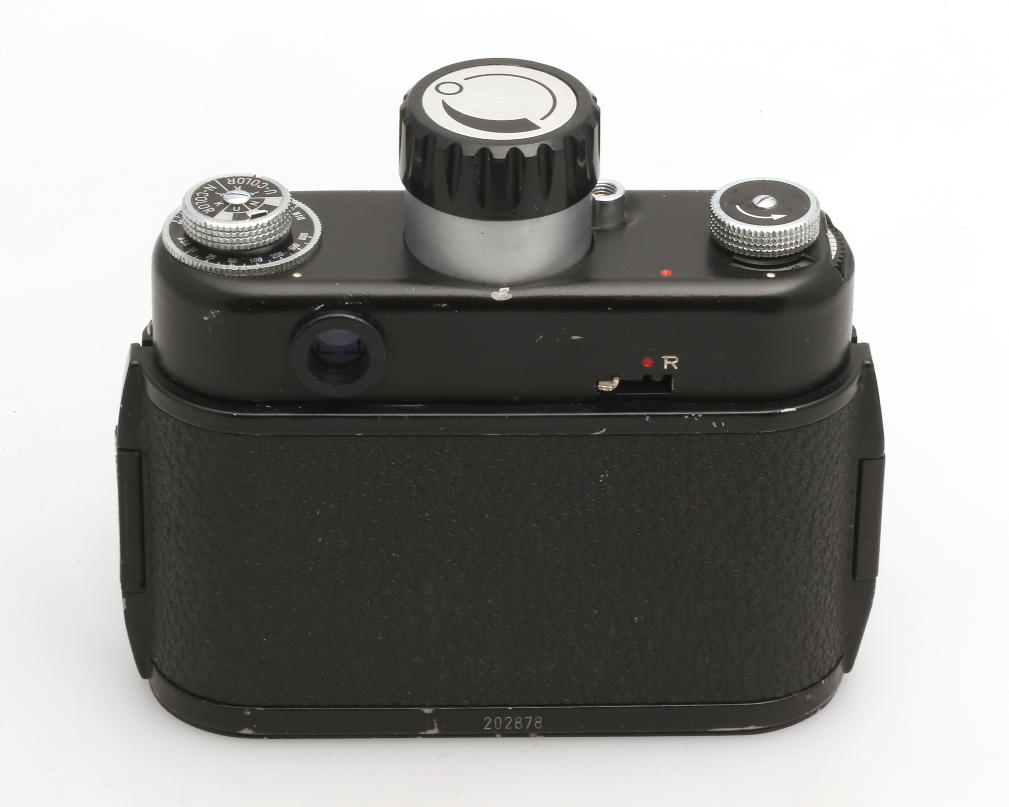Klassische Kleinbildkamera mit Federwerksmotor mit Leiselauf und wechselbarem Objektiv.