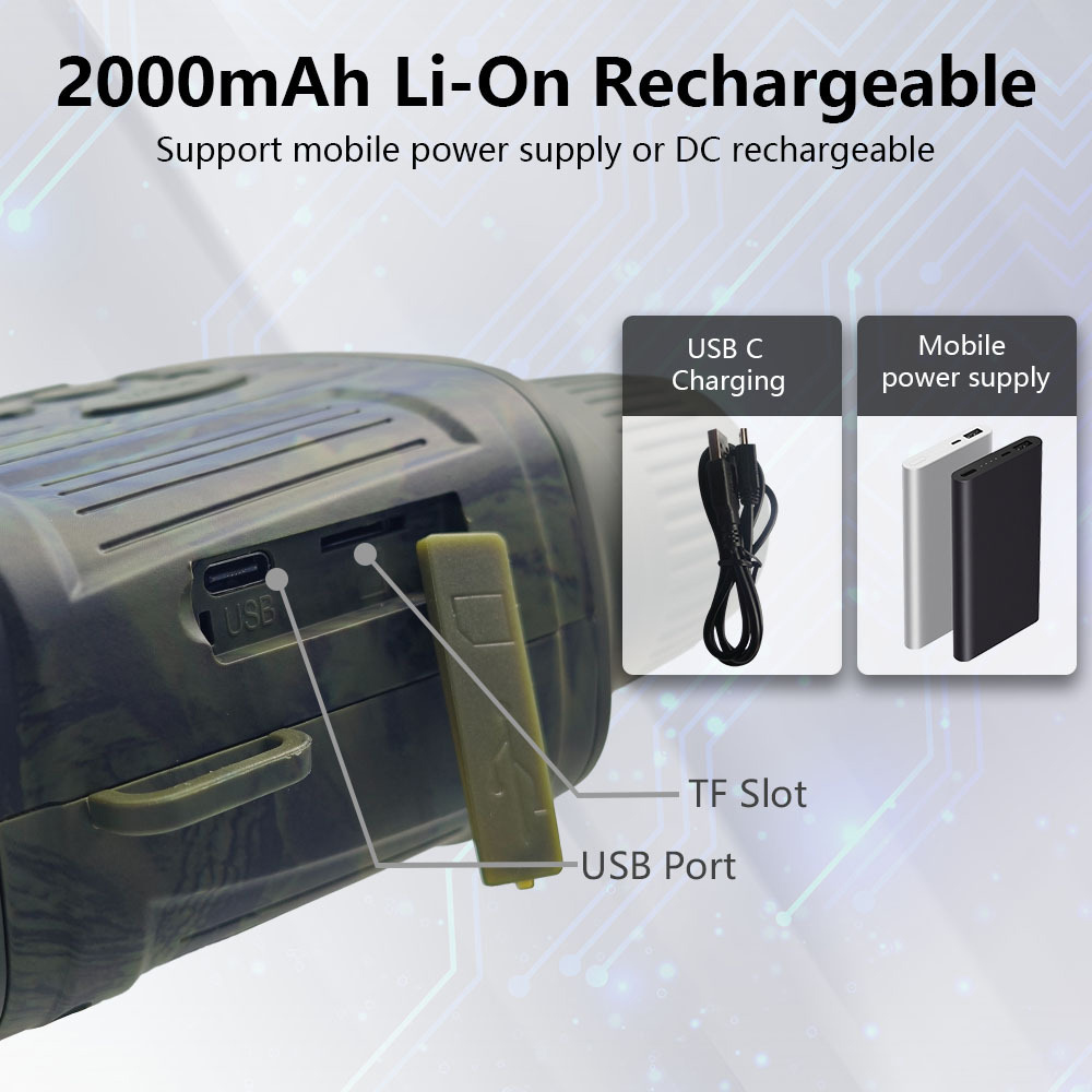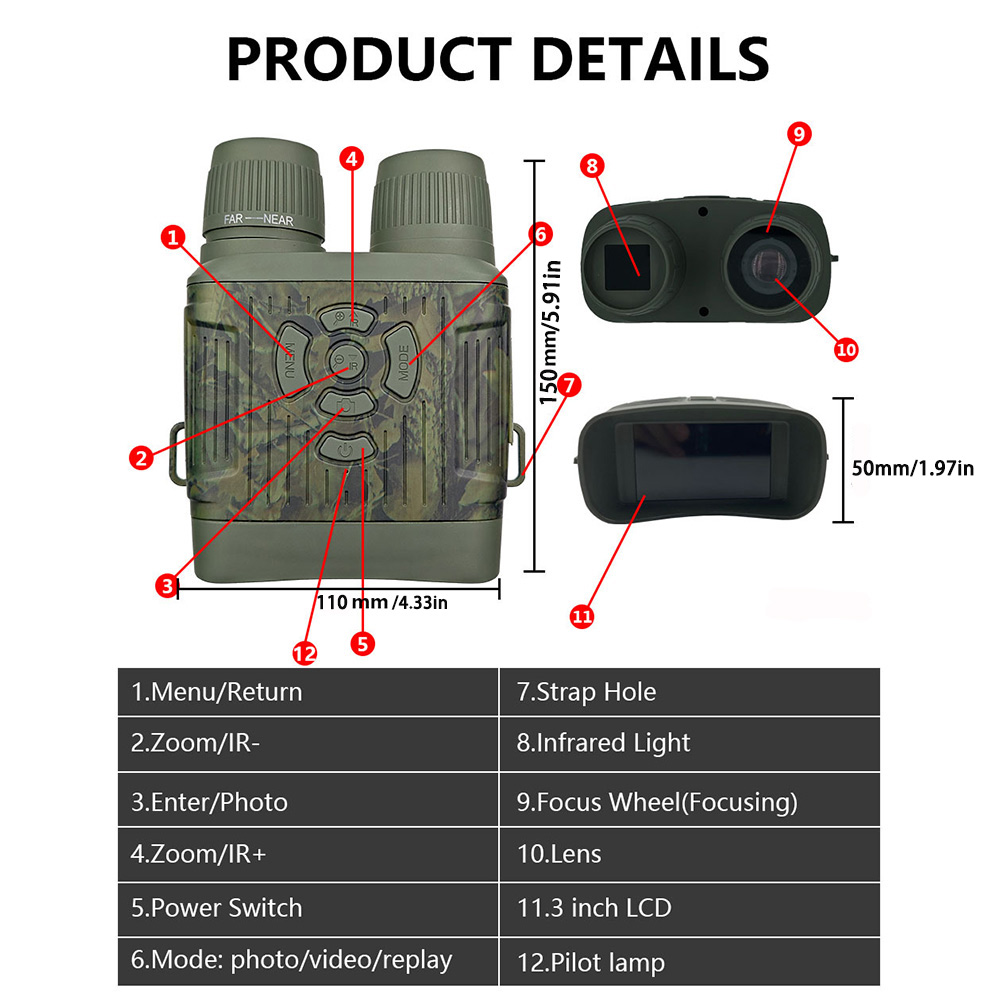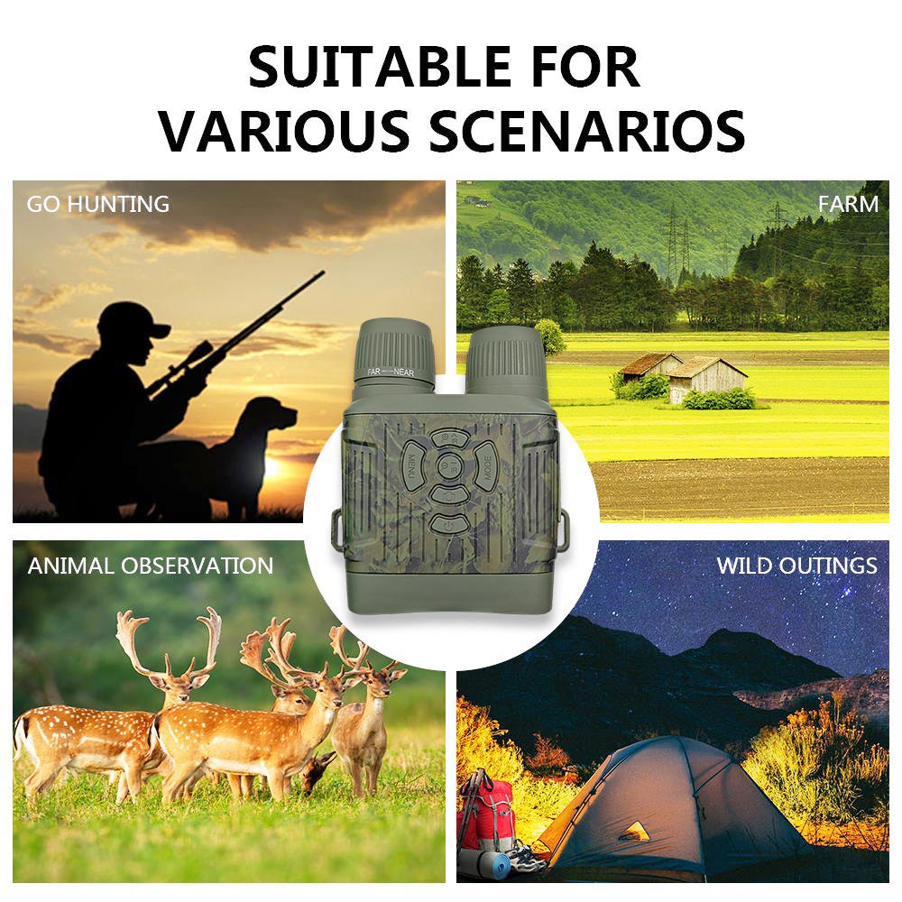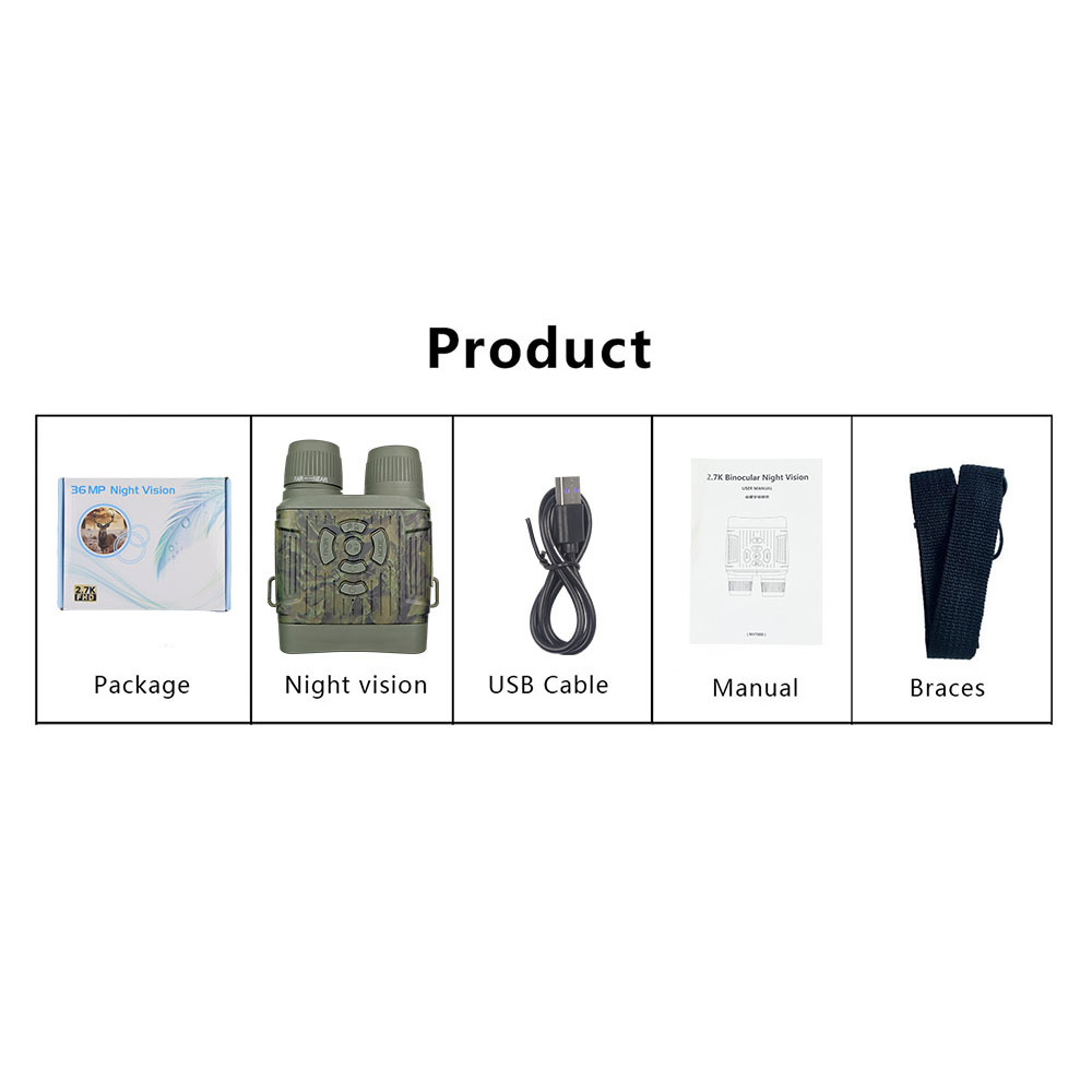 Features: *3.0inch TFT Display 3.0-inch digital TFT display, 36MP clear definition imaging resolution, with higher chromatic aberration reproduction and higher contrast ratio, bringing a more realistic visual immersion. *Day and Night Dual-Use Day and night dual-use design, daytime color picture true and delicate, color/black night mode for night use. All-black night vision, night use, low light observation distance infinite, all-black no light observation distance up to 656ft/200m. At night is a night vision device, at daytime it is comparable to binoculars. *2.7K Video Recording & 36MP Photo Taking High imaging quality, support max 36PM photos resolution, and 2.7K video recording resolution, showing more details, and capturing every splendid moment. *High Magnification Manual focal adjustment, 10X digital magnification, clear zooming, no loss of detail, day and night can achieve close observation of the target. *Infrared Light 3W infrared fill light will turn on for night use, 9 levels of brightness adjustment, according to different environments to select different intensities and more free observation. *USB Interface & Data Transfer With a USB interface for charging or data transfer. Recorded videos and photos can be exported to computers via a data cable for viewing more details on a larger screen. And support inserts a max 128GB TF card (not included) for expansion memory. *Wide Applications Suitable for various activities such as boating and yachting watching, huntings, birdwatching, travel, hiking, camping, and animal watching. Also perfect for sports games, concerts, opera, etc. Specification: Model: NV7000 Photo Resolution: 36M/32M/30M/24M Video Resolution: 2.7K/1080P/720P Display: 3inch 800*480 TFT Display Aperture: F1.2, f=25mm Lens: FOV=10°, 25mm Diameter Observation Distance in Total Dark: 150-200M Observation Distance in Low Light or Daytime: 3 Meters to Infinite Distance Infrared Light: 3W, 850nm, Strong Infrared Spotlight, 9 Infrared Adjustments Battery: 3.7V 2000mAh Lithium-Ion Battery USB Interface: Type-C Digital Zooming: 10X Operating Temperature: -20℃ to + 60℃ Storage Temperature: -30℃ to + 70℃ Material: Plastics Size: As Picture Package Include: 1 * Night-Visions 1 * Nylon Shoulder Belt 1 * USB Cable 1 * Guideline