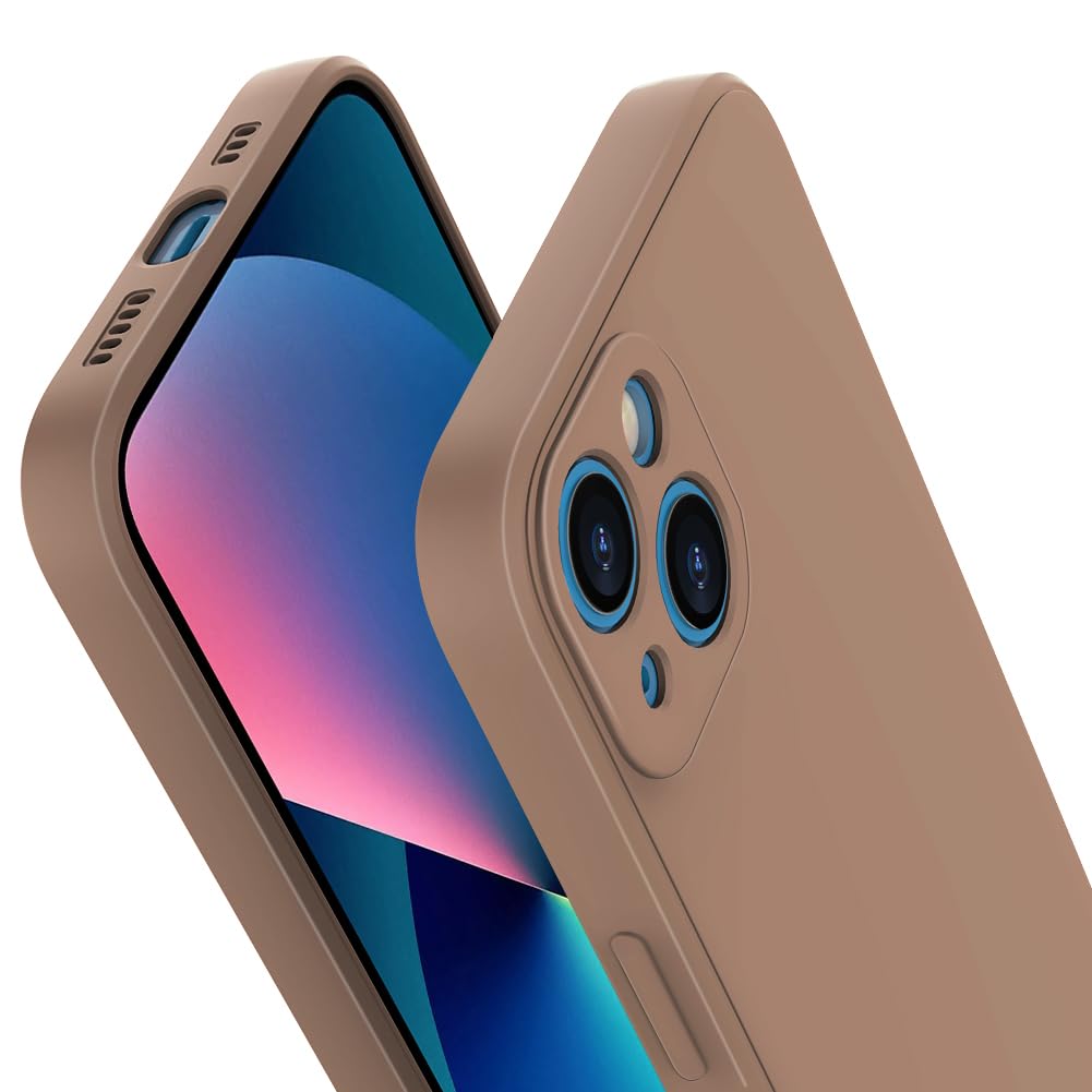 Coque pour iPhone 13, Coque Souple en Silicone Liquide, Cover Antichoc Ultra Fine, Anti Rayures Housse Case pour iPhone 13-6,1 Pouces - Brune Caramel