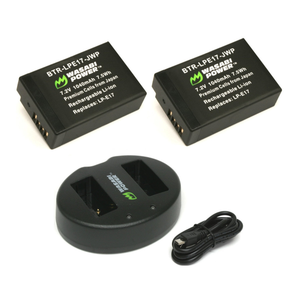 This Wasabi Power battery and charger kit includes 2 batteries for Canon LP-E17.