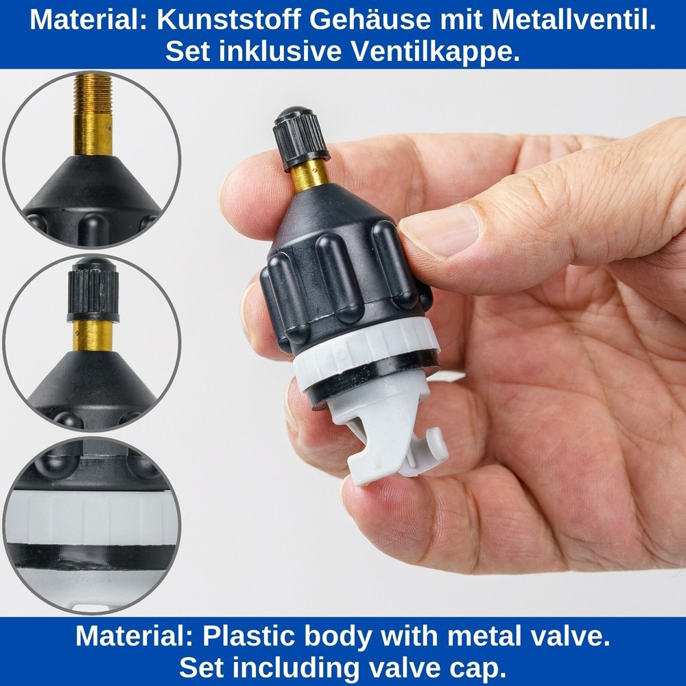 - Universelles Set mit Adapter und Ventilkappe - passend für die meisten Luftpumpensysteme
