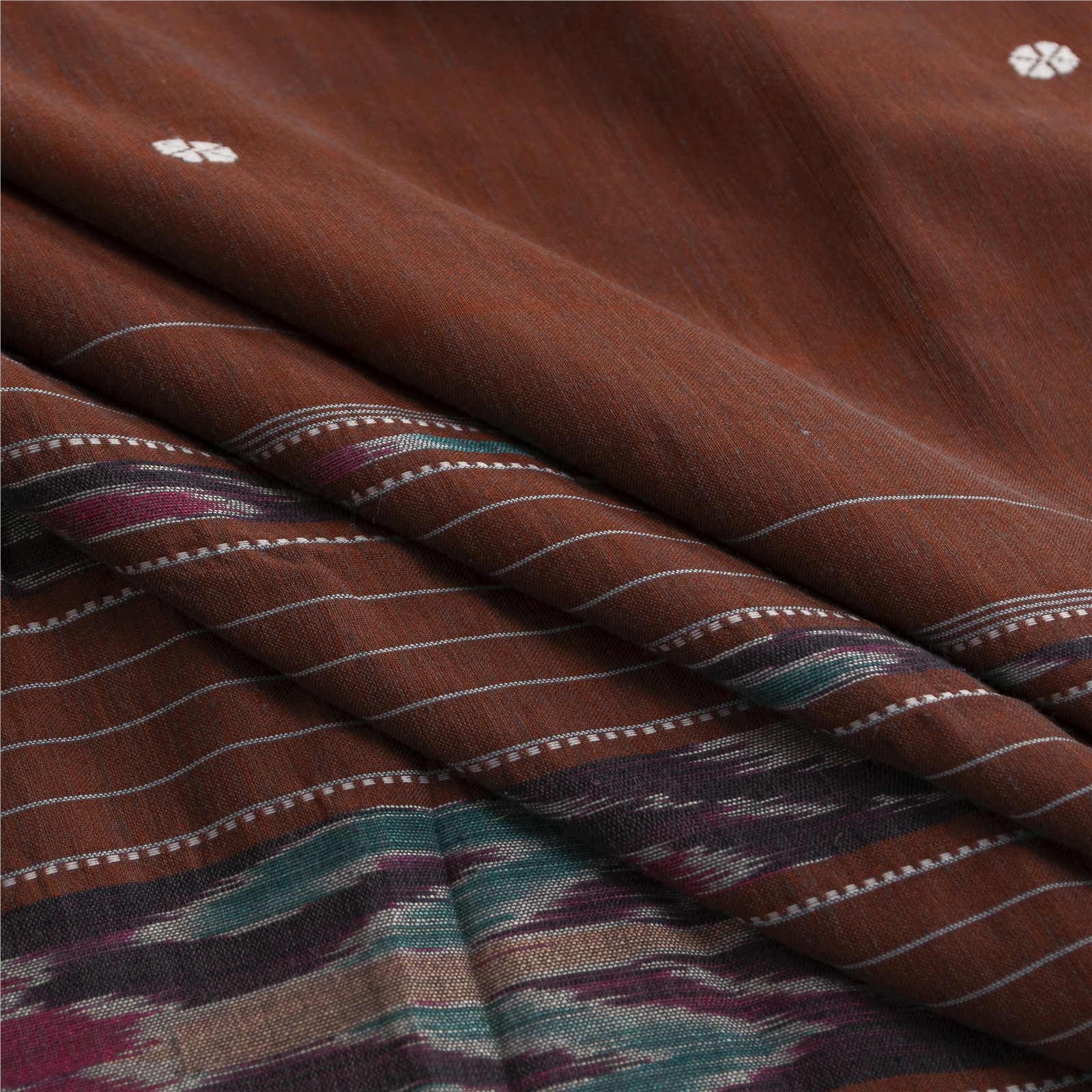 a. Horizontally plate the saree and dip it in the mild detergent, grip the saree and move it up and down in detergent water with your hands and then wash it in the similar way with just water.