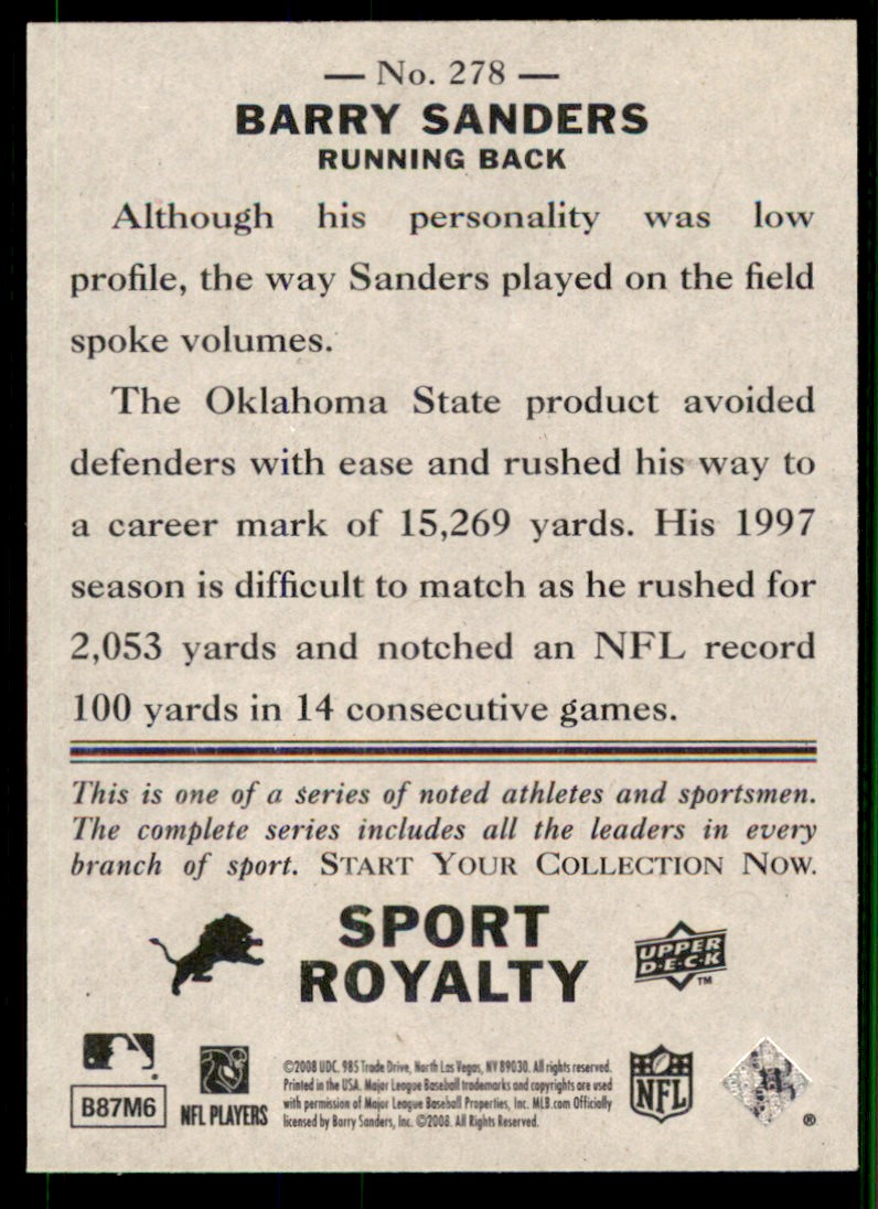 2008 Upper Deck Goudey SP #278 Barry Sanders Detroit Lions